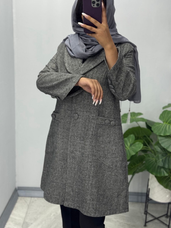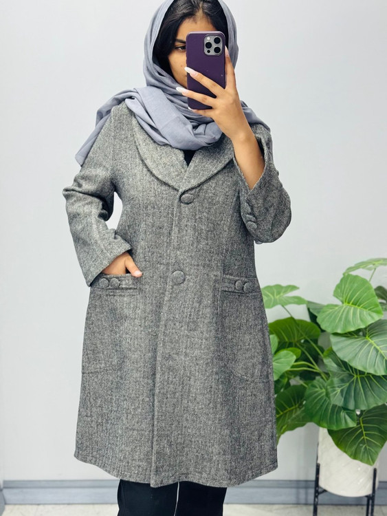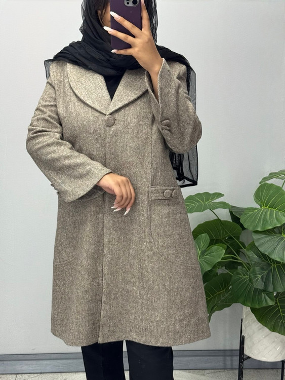مانتو پاییزه با پارچه فوتر توییت وارداتی پیش کار لایی کشی شده مناسب فصل پاییز و زمستان