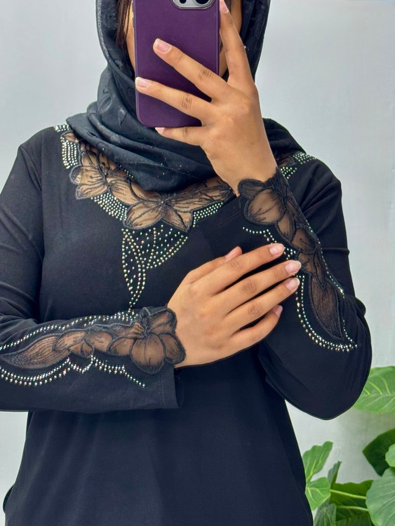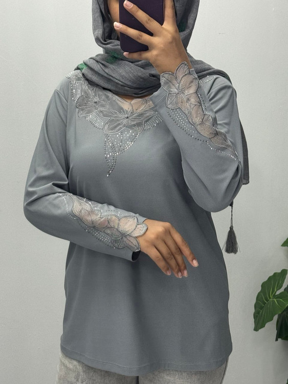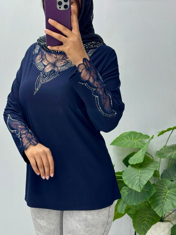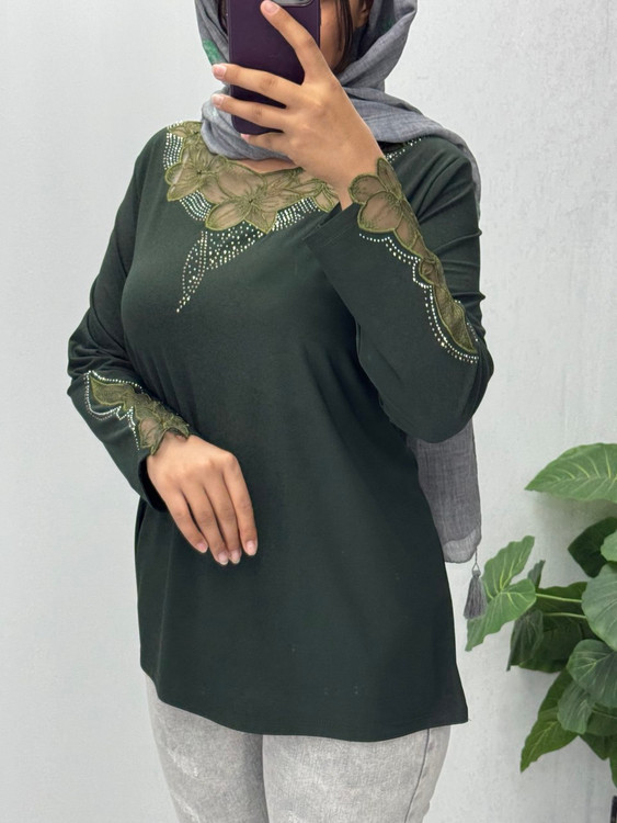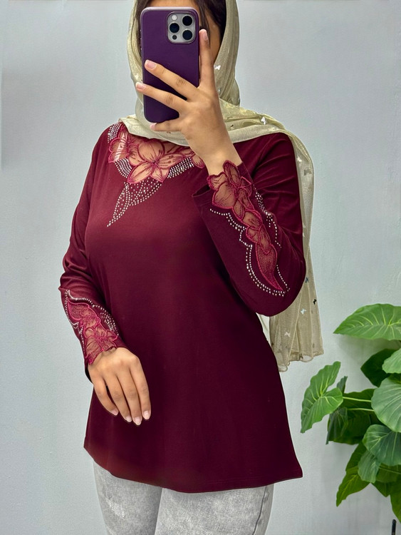 بلوز مجلسی با پارچه کرپ جودون با گیپور و نگین کار شده