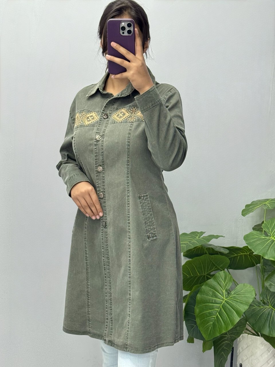 مانتو با پارچه کتان ببیگمنت شست شده گلدوزی