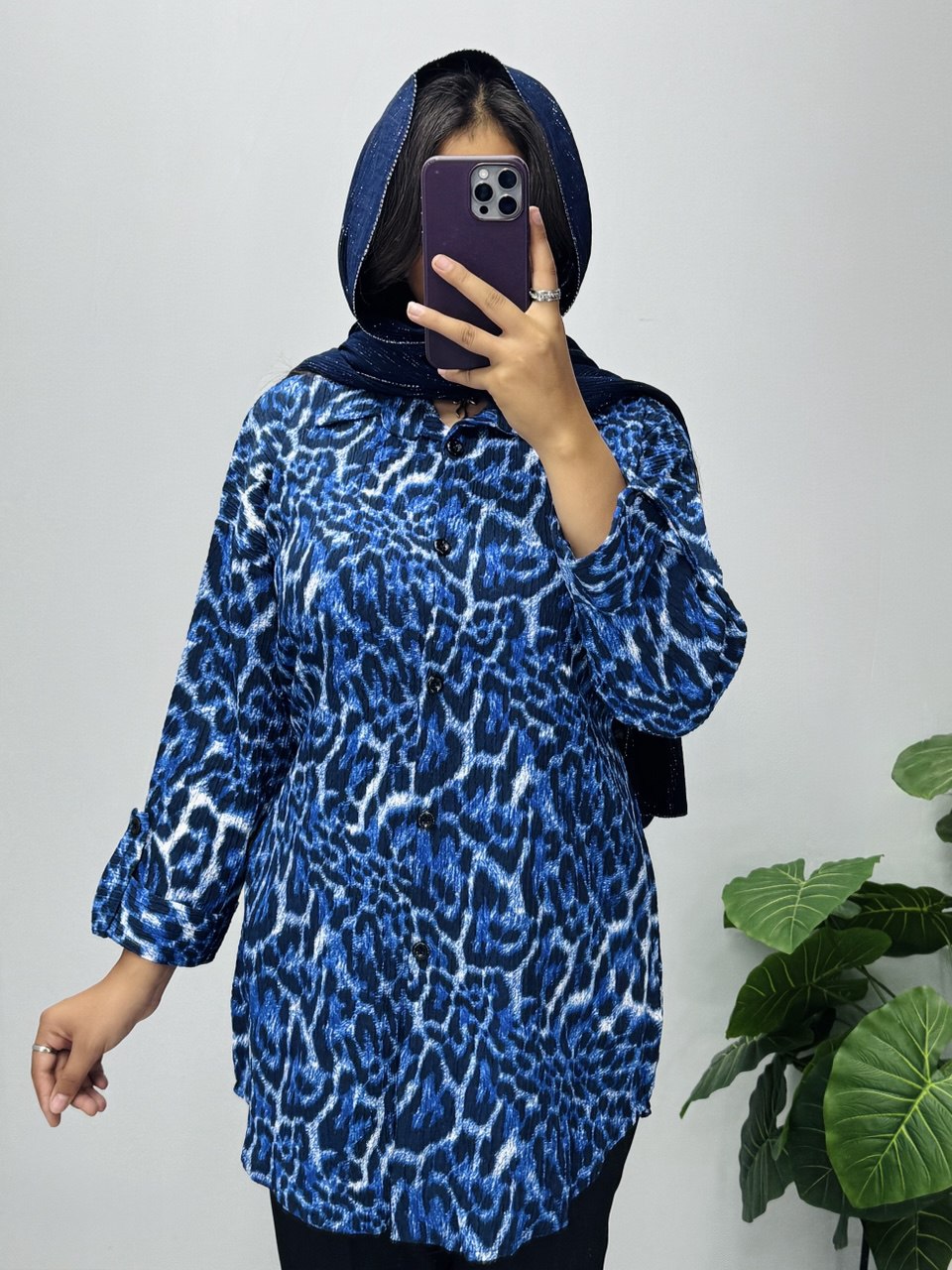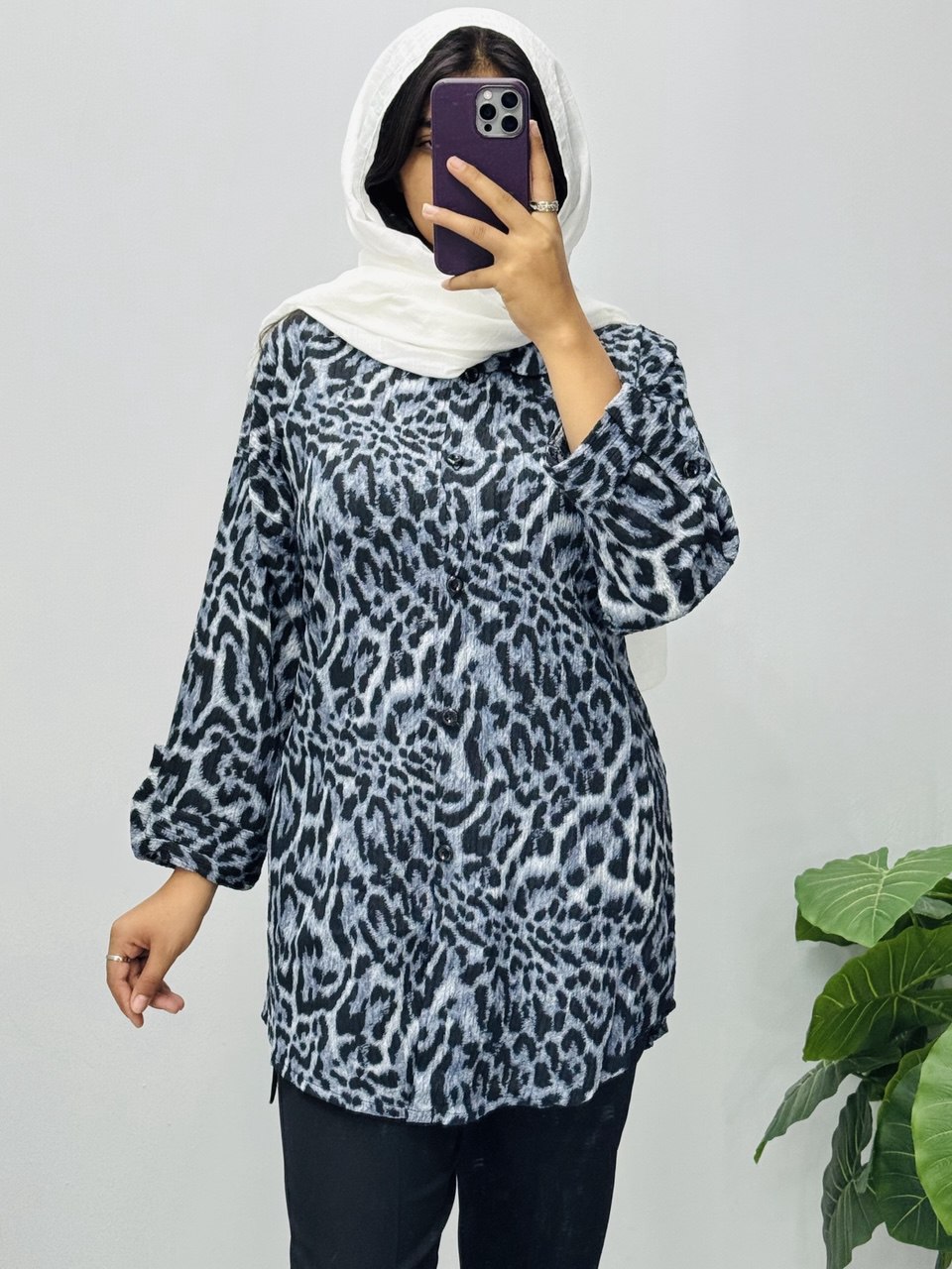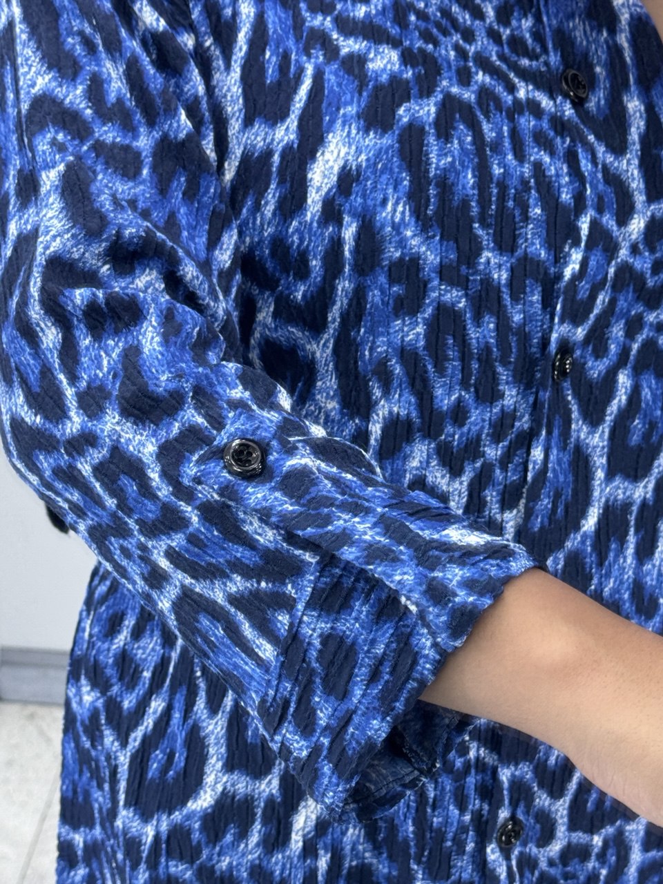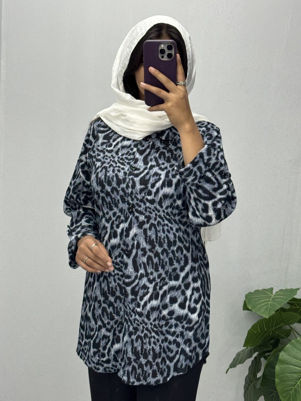 شومیز پلنگی با پارچه ایوا چاپی مناسب فصل تک سایز مناسب برای سایزهای ۴۰ الی ۴۶ با کمربند فیکس میشه قد لباس ۸۰ آستین ۴۵ دور سینه ۱۱۸ بازو ۱۱۸ باسن ۱۲۴ بازو ۴۲