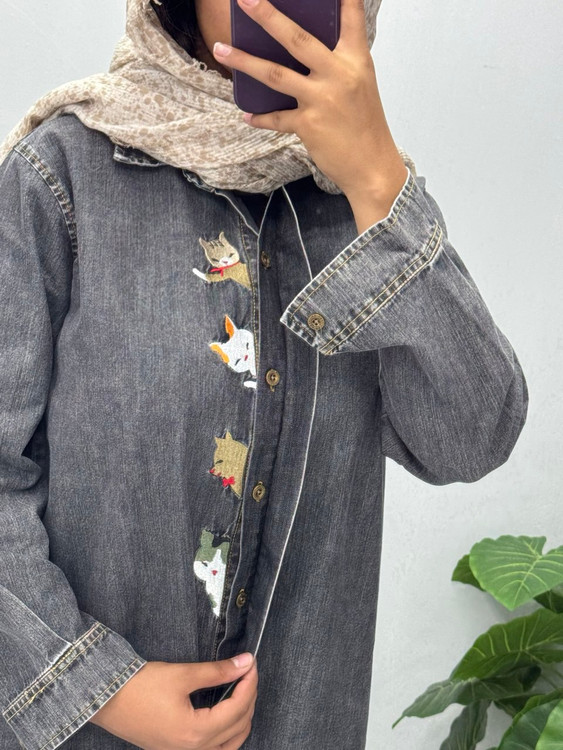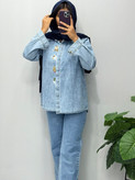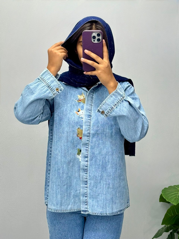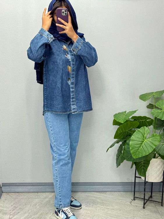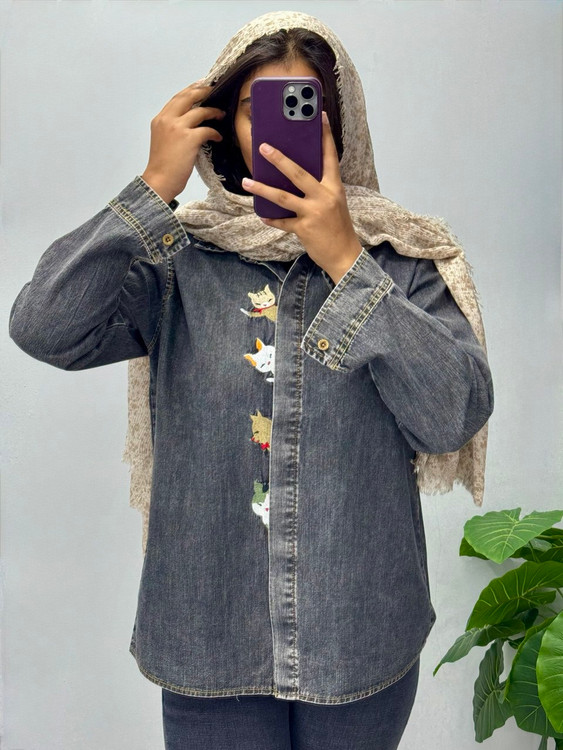 شومیز جین گرم بالا گلدوزی شده شست شده