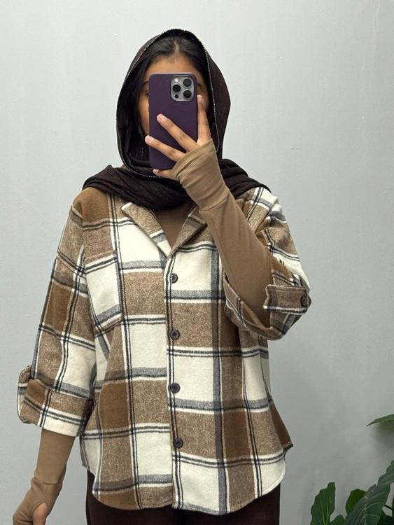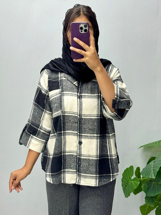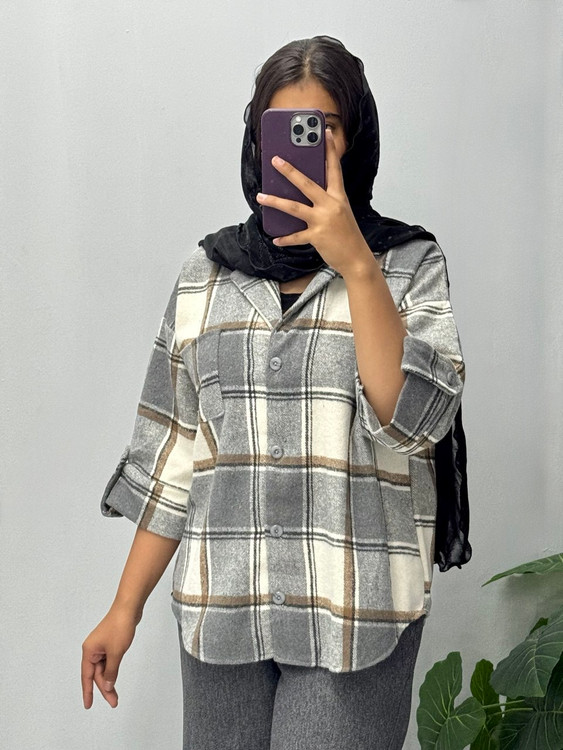 مانتو باکسی با پارچه پشمی پاییزه