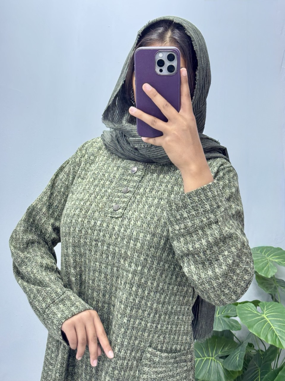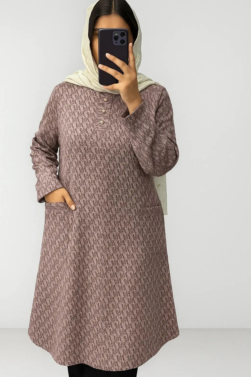تونیک مانتویی با پارچه آبغوره ژاکارد مناسب فصل پاییز تک سایز ۴۴ الی ۵۰ با کمر فیکس میشه قد لباس ۱۰۵ قد آستین ۵۸ دور سینه ۱۱۸ کمر ۱۱۸ باسن ۱۳۰ بازو ۴۸