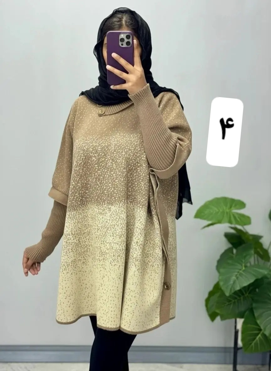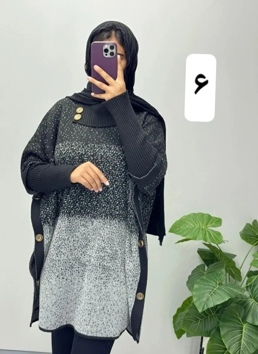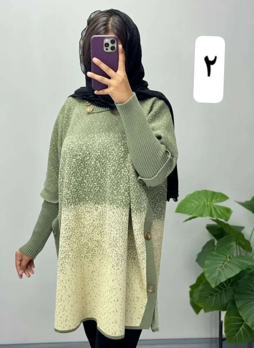 پانچ بافت با نخ اکرلیک با تراکم بالا تک سایز مناسب برای سایزهای ۳۸ الی ۵۰ قد ۸۳ آستین ۵۵ دور سینه کمر باسن بازو قواره آزاد