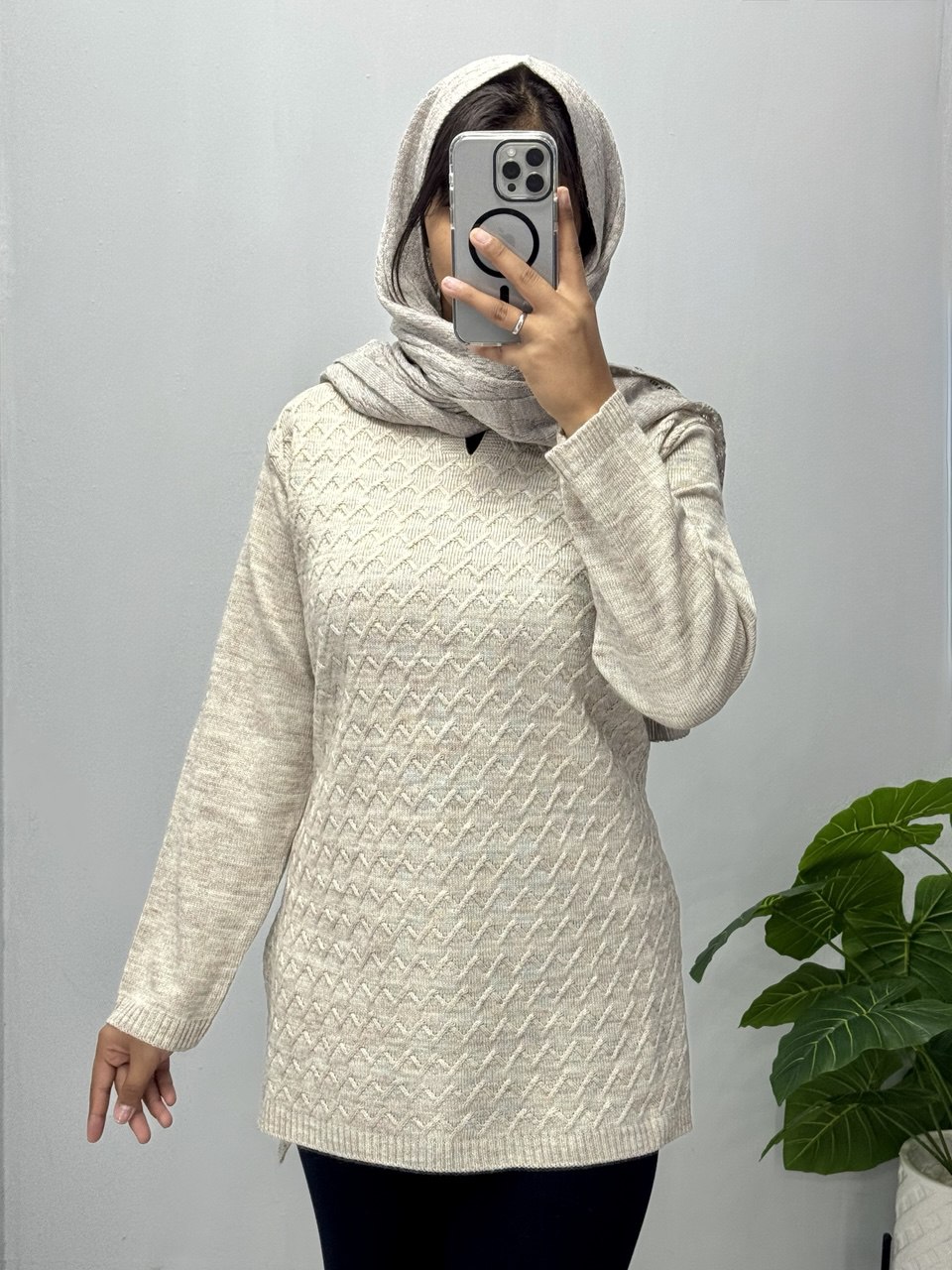 تونیک بافت با نخ آکریل با تراکم بالا نرم و لطیف تک سایز مناسب برای سایزهای 46 الی 52 قد جلوی لباس 73 قد پشت لباس 80 قد آستین 57 دور سینه 120 کمر 116 دور کشباف 112 دور بازو 42