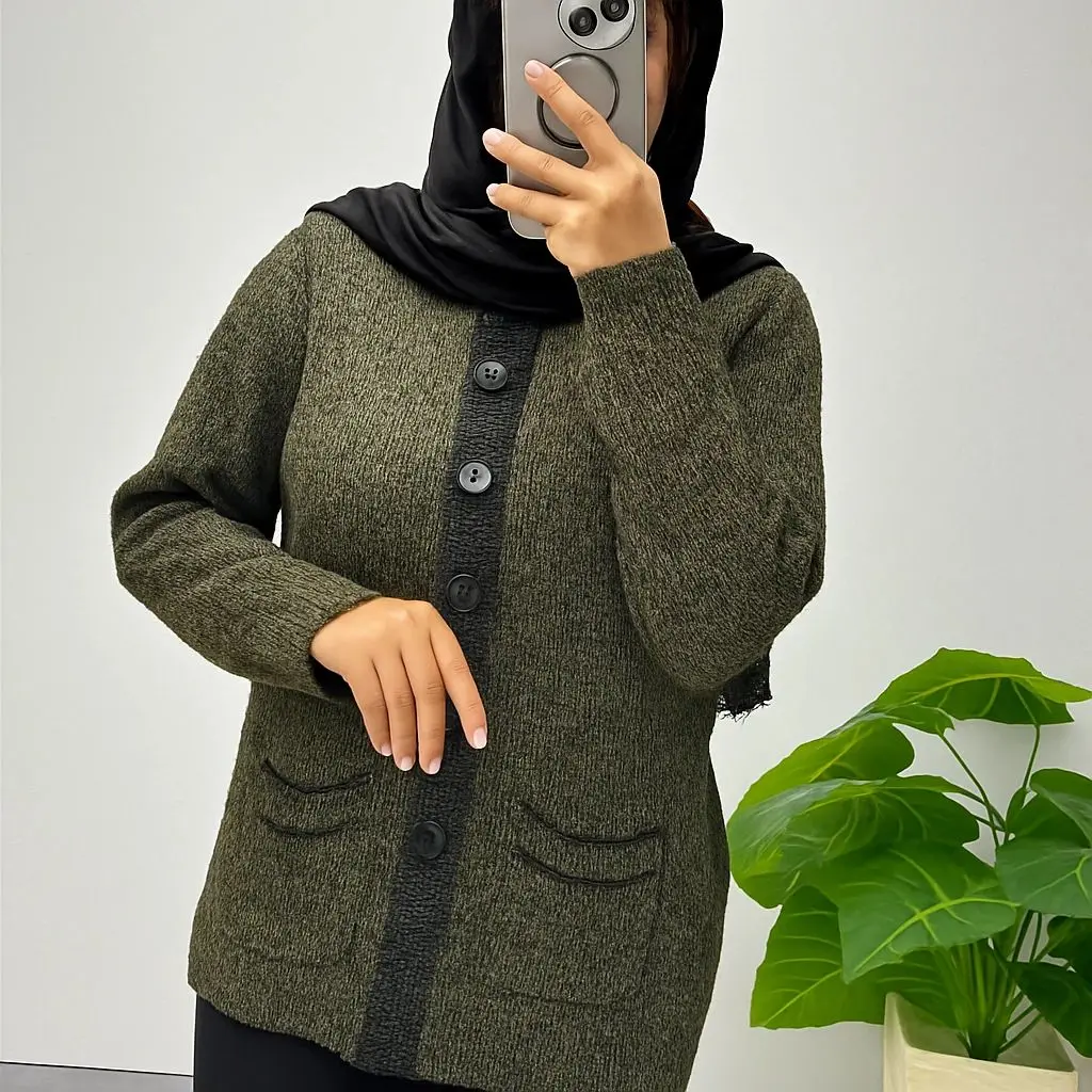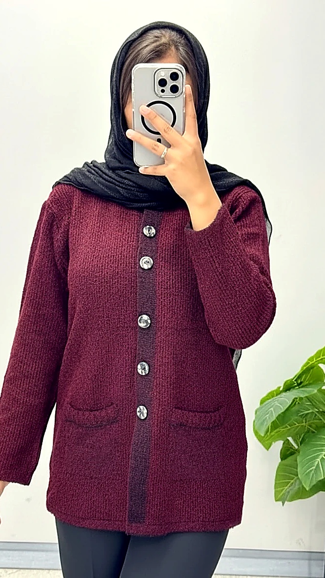 جاکت بافت با نخ بوکله با تراکم بالا سفت تک سایز مناسب برای سایزهای 40 الی 46 قد لباس 65 آستین 53 دور سینه 108 کمر 104 باسن 104 بازو 42 با کشسانی
