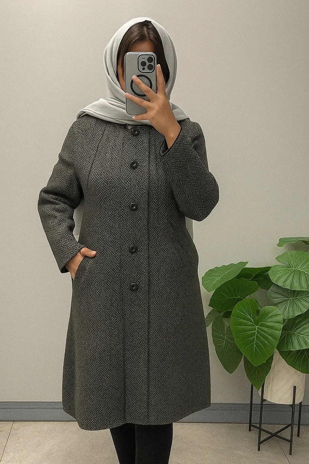 مانتو بافت با نخ رکریل درجه یک با تراکم بالا تک سایز مناسب برای سایز های 44 الی 50 قد 102 قد آستین 57 دور سینه 120 کمر 116 باسن 128 بازو 44