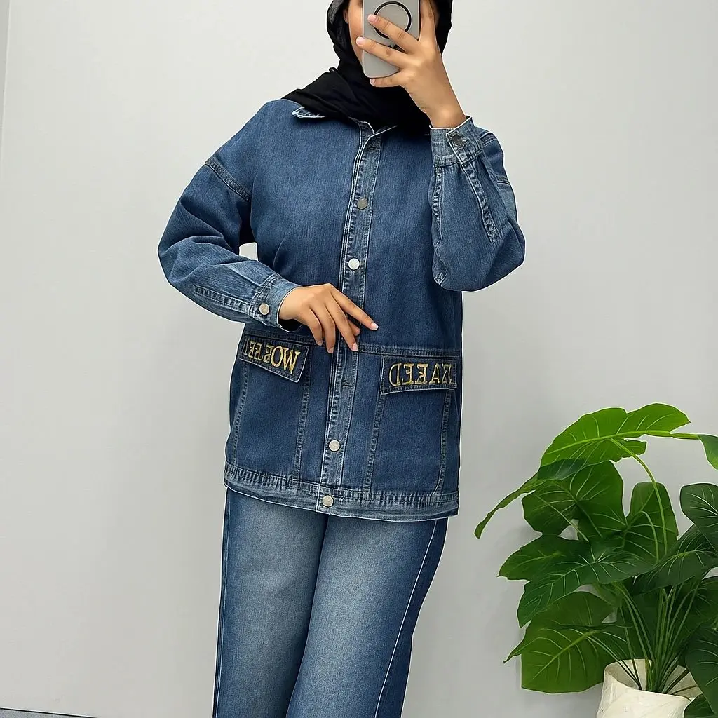 مانتو کتی جین با پارچه جین شست و آنزیم شور شده تک سایزی مناسب برای سایزهای 38 الی 46 قد لباس 70 آستین 57 دور سینه 116 کمر 112 باسن 106 بازو 42