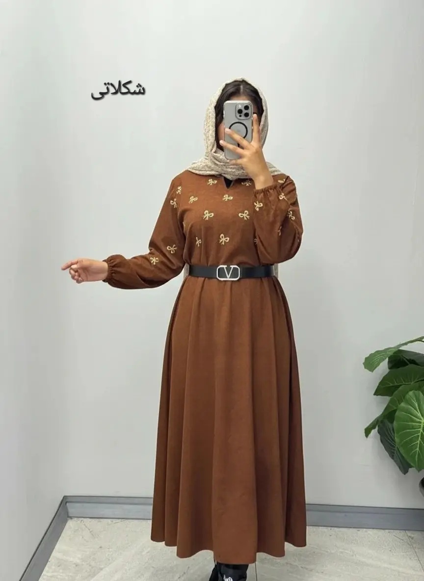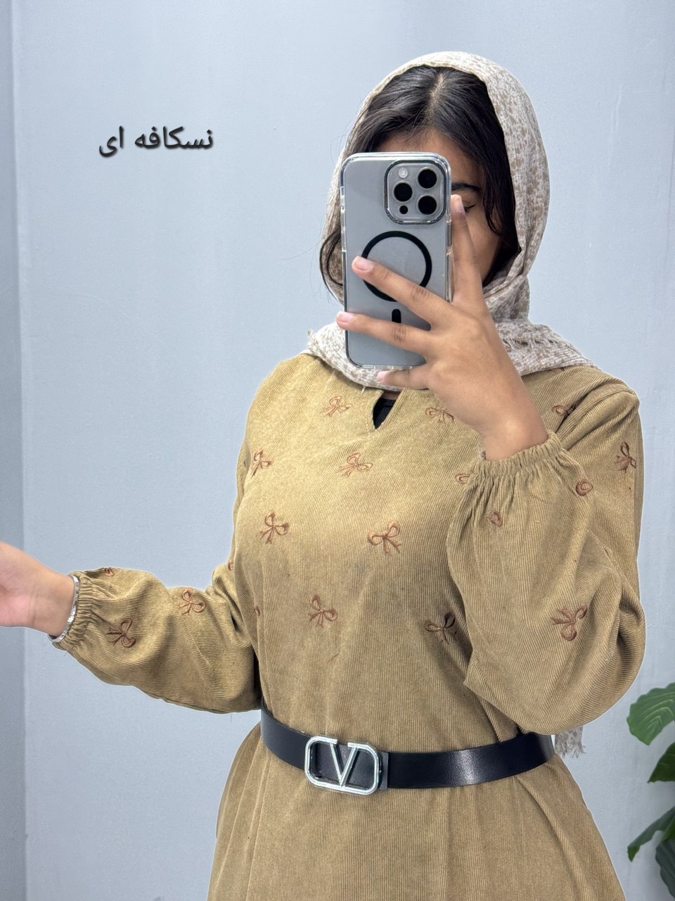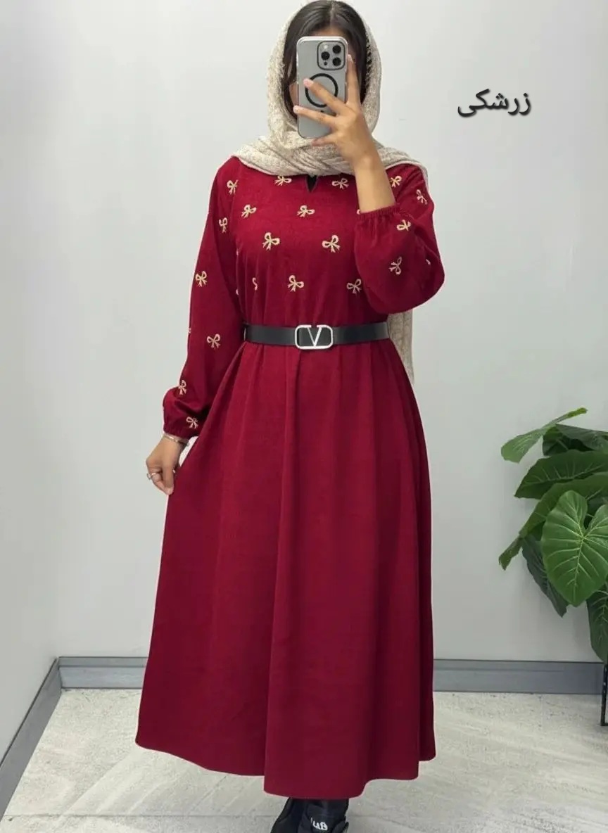 کفتان با پارچه مخمل کبریتی گلدوزی شده تک سایز مناسب برای سایزهای 40 الی 48 قد لباس 139 آستین 57 دور سینه 114 کمر 118 باسن 126 بازو 42
