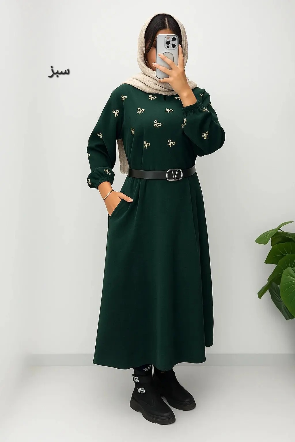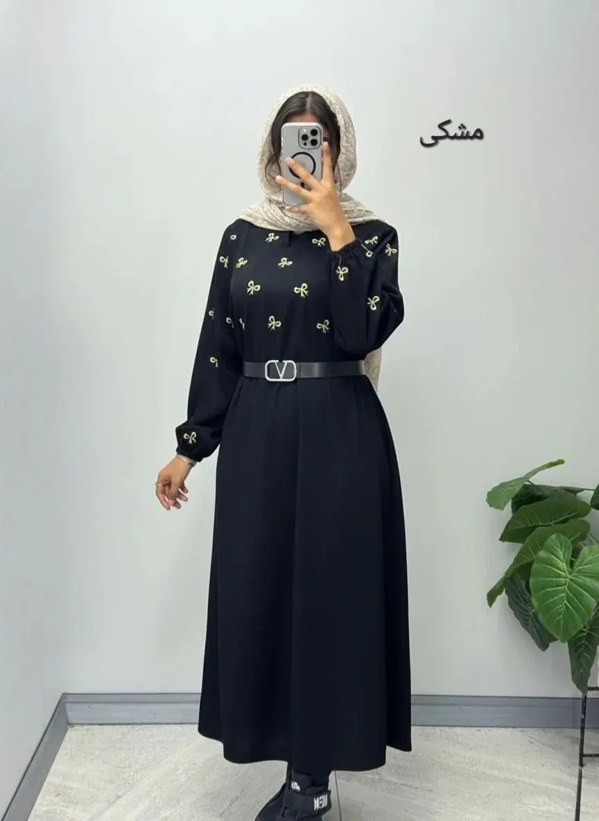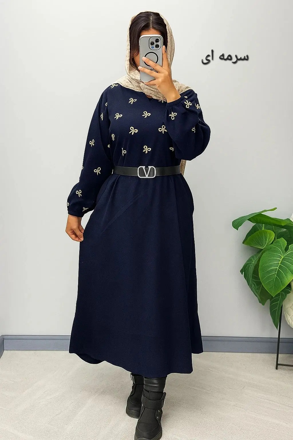 کفتان با پارچه مخمل کبریتی گلدوزی شده تک سایز مناسب برای سایزهای 40 الی 48 قد لباس 139 آستین 57 دور سینه 114 کمر 118 باسن 126 بازو 42