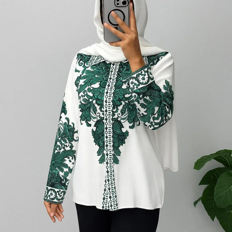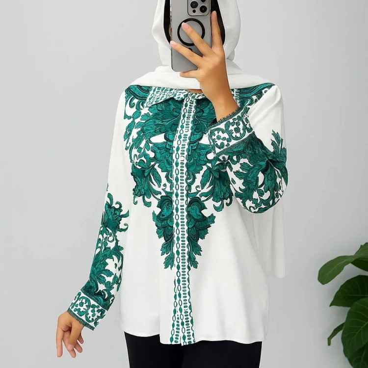 شومیز با پارچه کرپ الیزه چاپی با کیفیت بالا و تنخور شیک