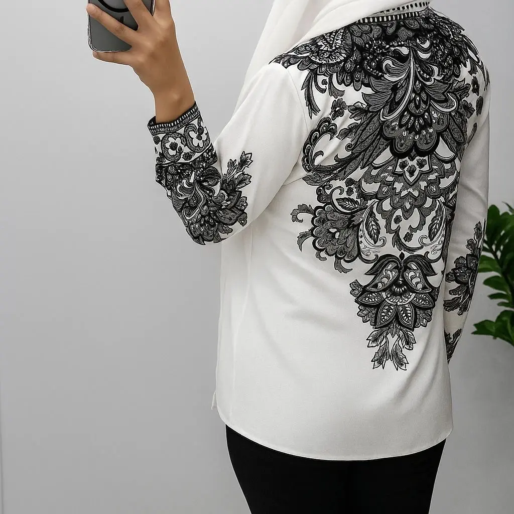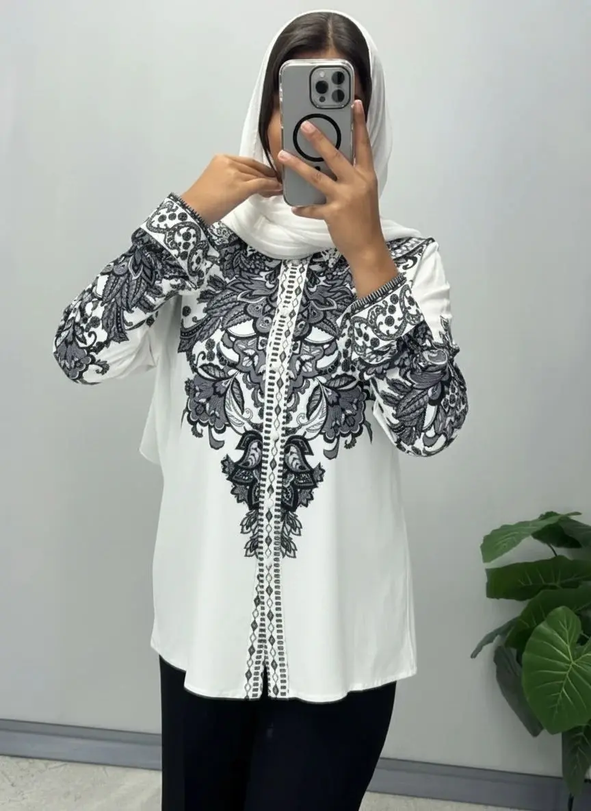 شومیز با پارچه کرپ الیزه چاپی با کیفیت بالا و تنخور شیک