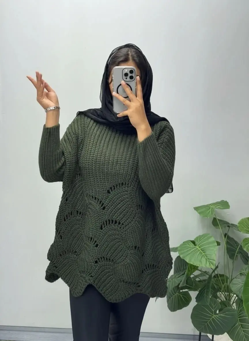 پانچ بافت با نخ آکریل با تراکم بالا و درشت بافت با کشسانی بالا تک سایز 38 الی 48 قد لباس 70 دور سینه تا 130