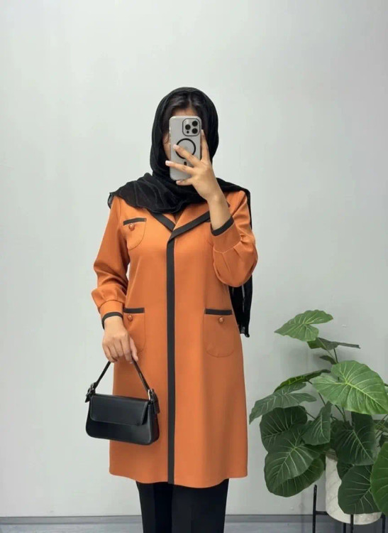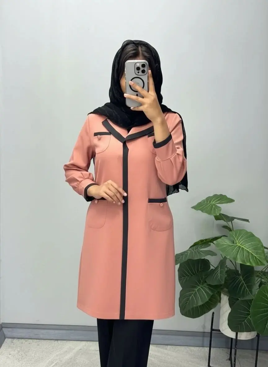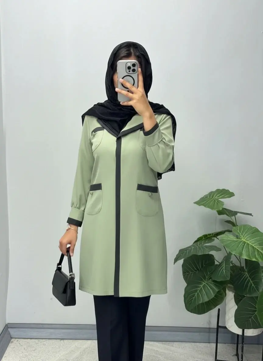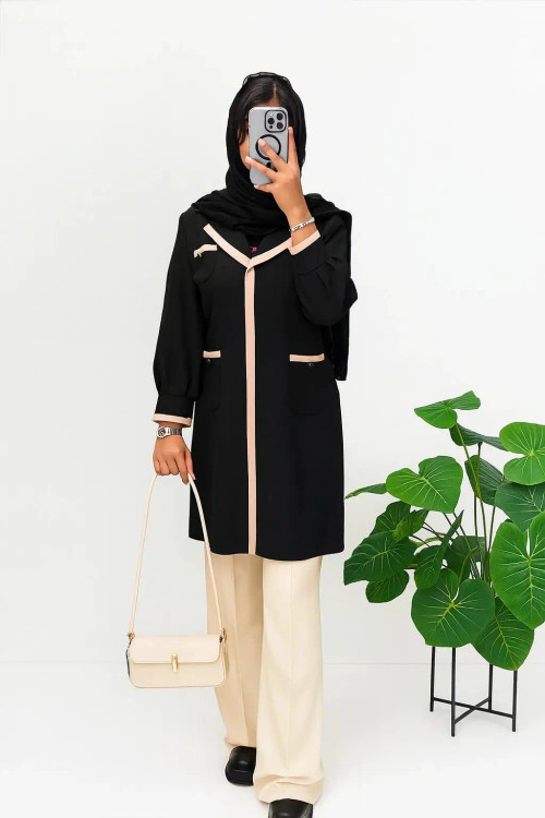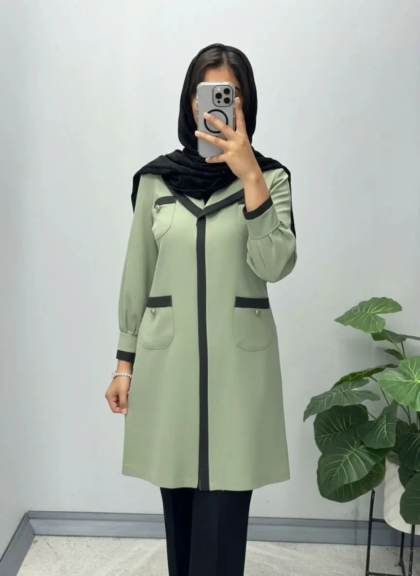 مانتو با پارچه کرپ مازراتی درجه یک مانتو با دکمه پرسی بسته میشه