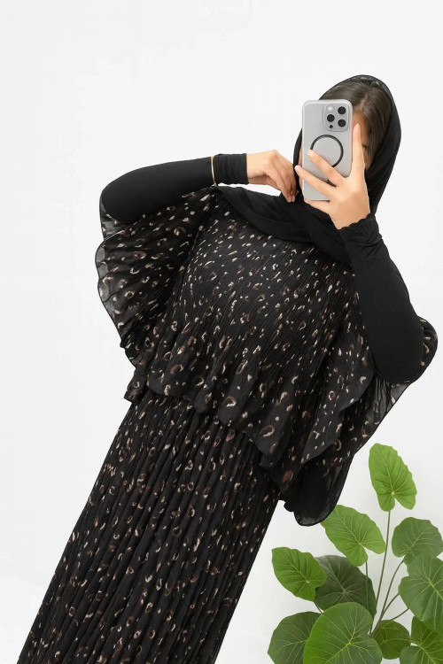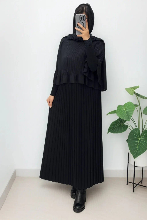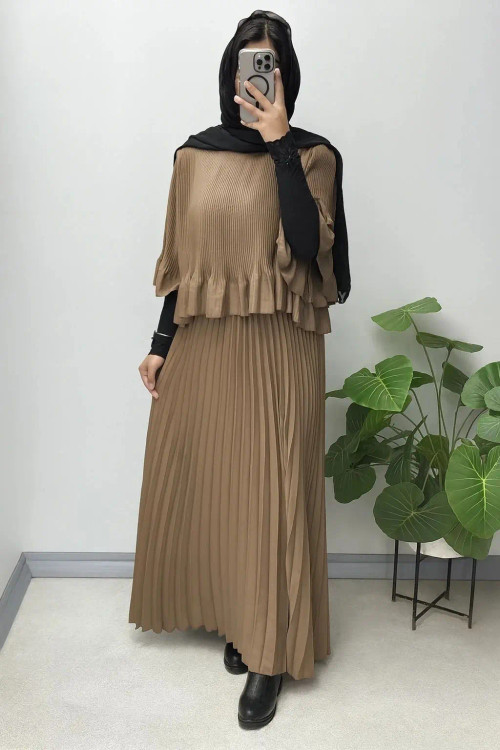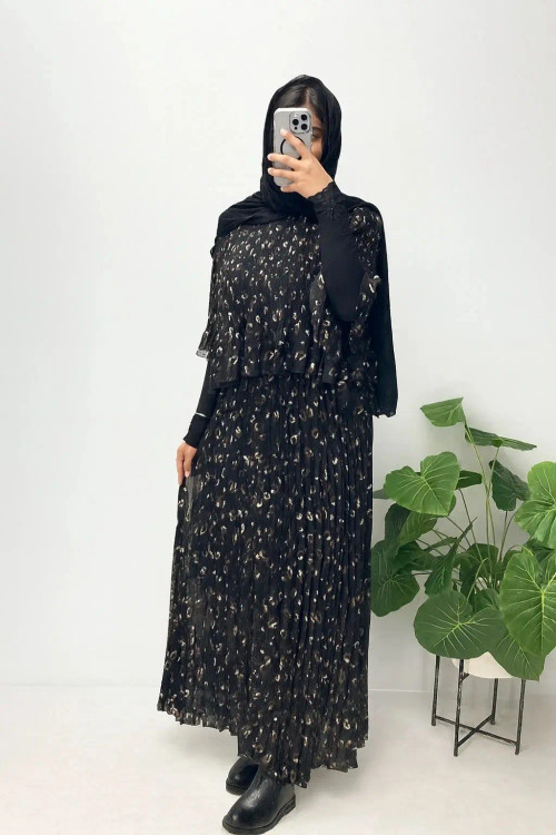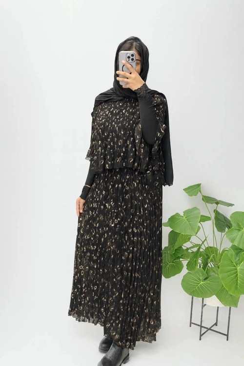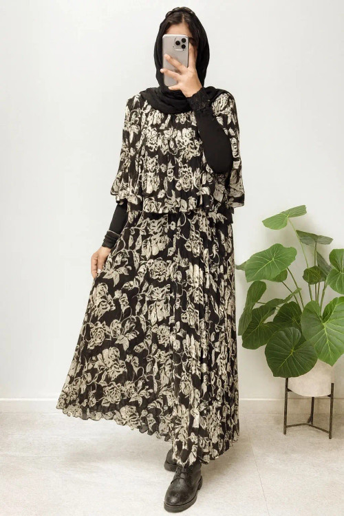 ماکسی مجلسی کرپ حریر پلیسه مدل دوتیکه رویه و سارافون چسبیده