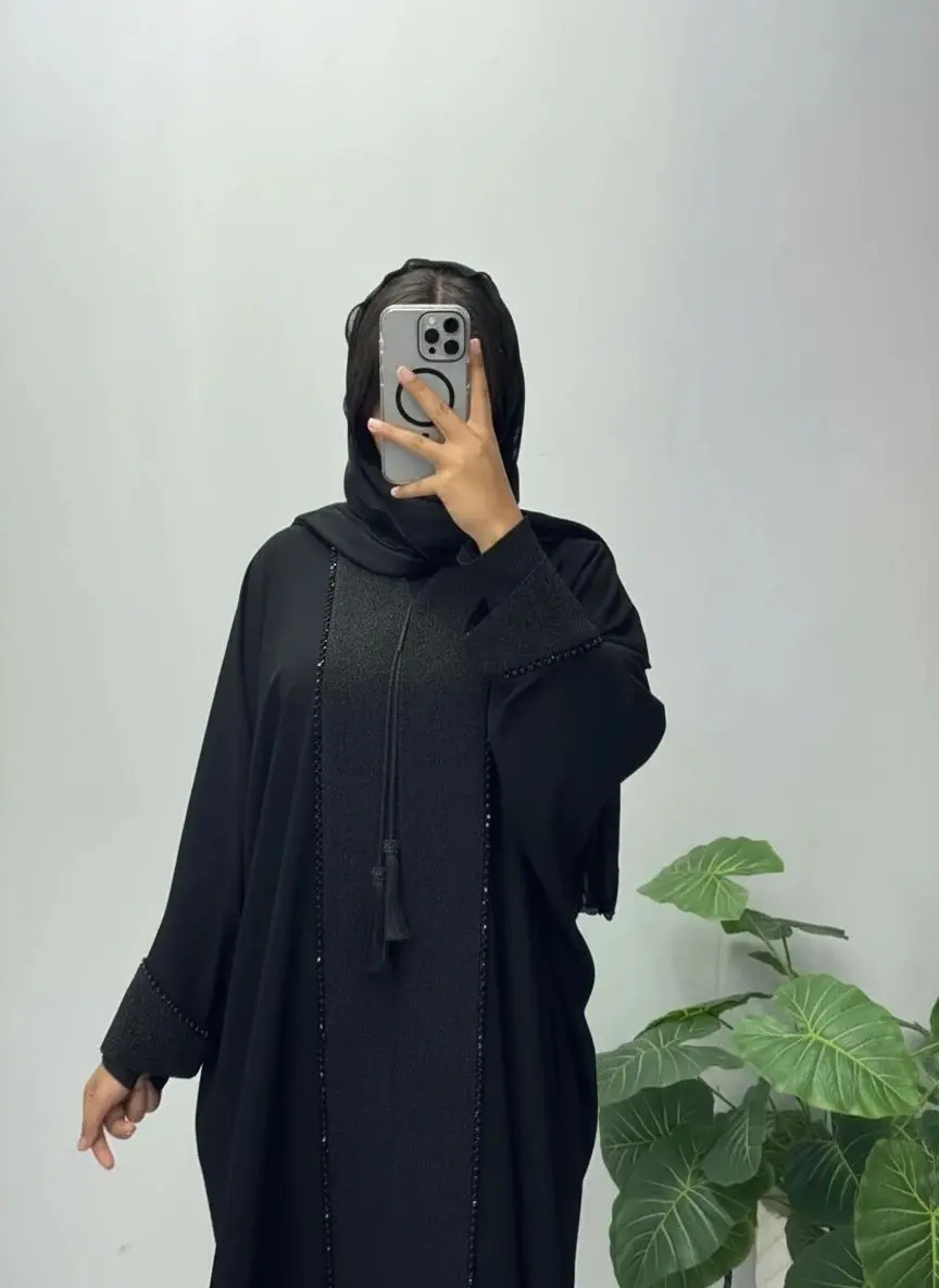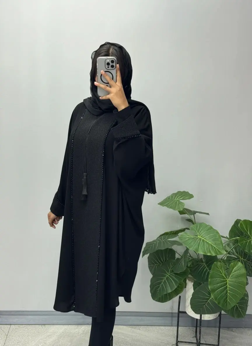 پانچ مجلسی با پارچه کرپ کره ای جت بلک پیش کار با دکمه مخفی بسته میشه تک سایز مناسب برای سایزهای 40 الی 66 قد لباس 110