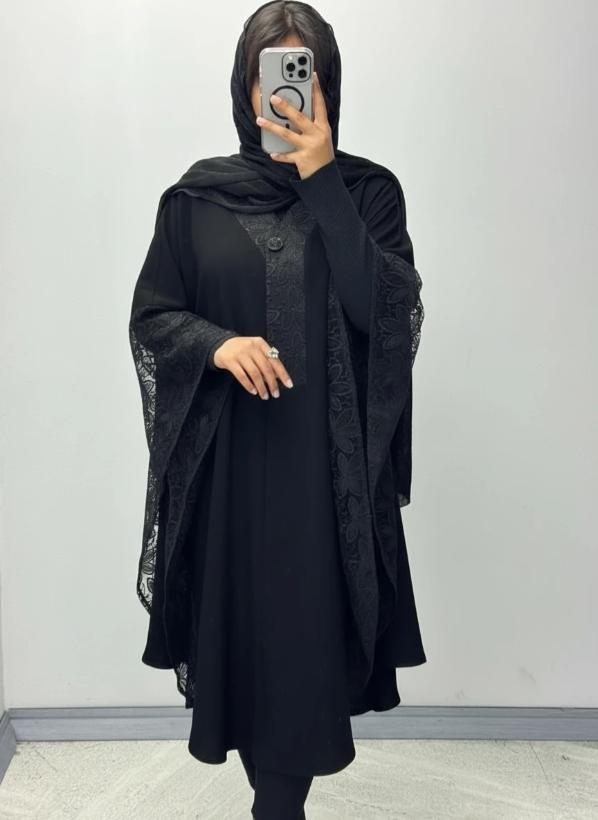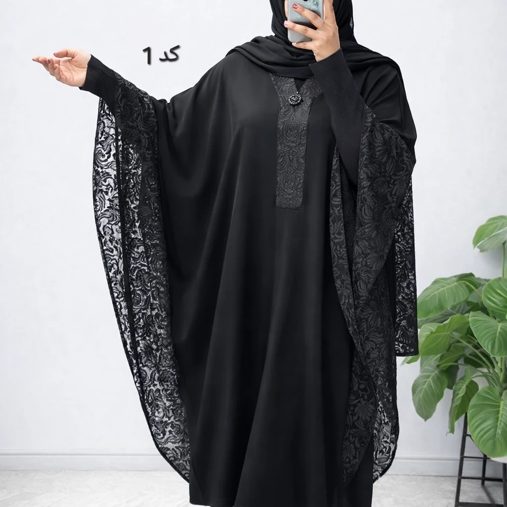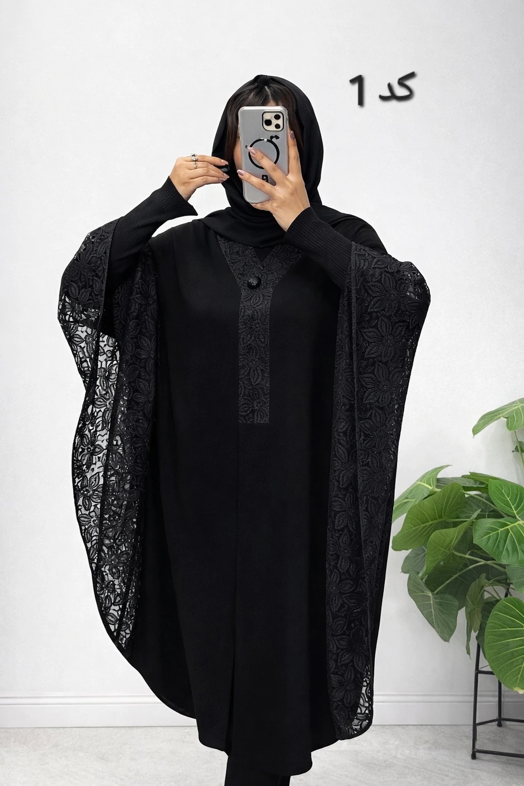 پانچ با پارچه ترکیبی کرپ مرویجت و گیپور با کیفیت دوخت و تنخور عالی تک سایز مناسب برای سایزهای 40 الی 70 قد لباس 116 مدل پانچ قواره آزاد
