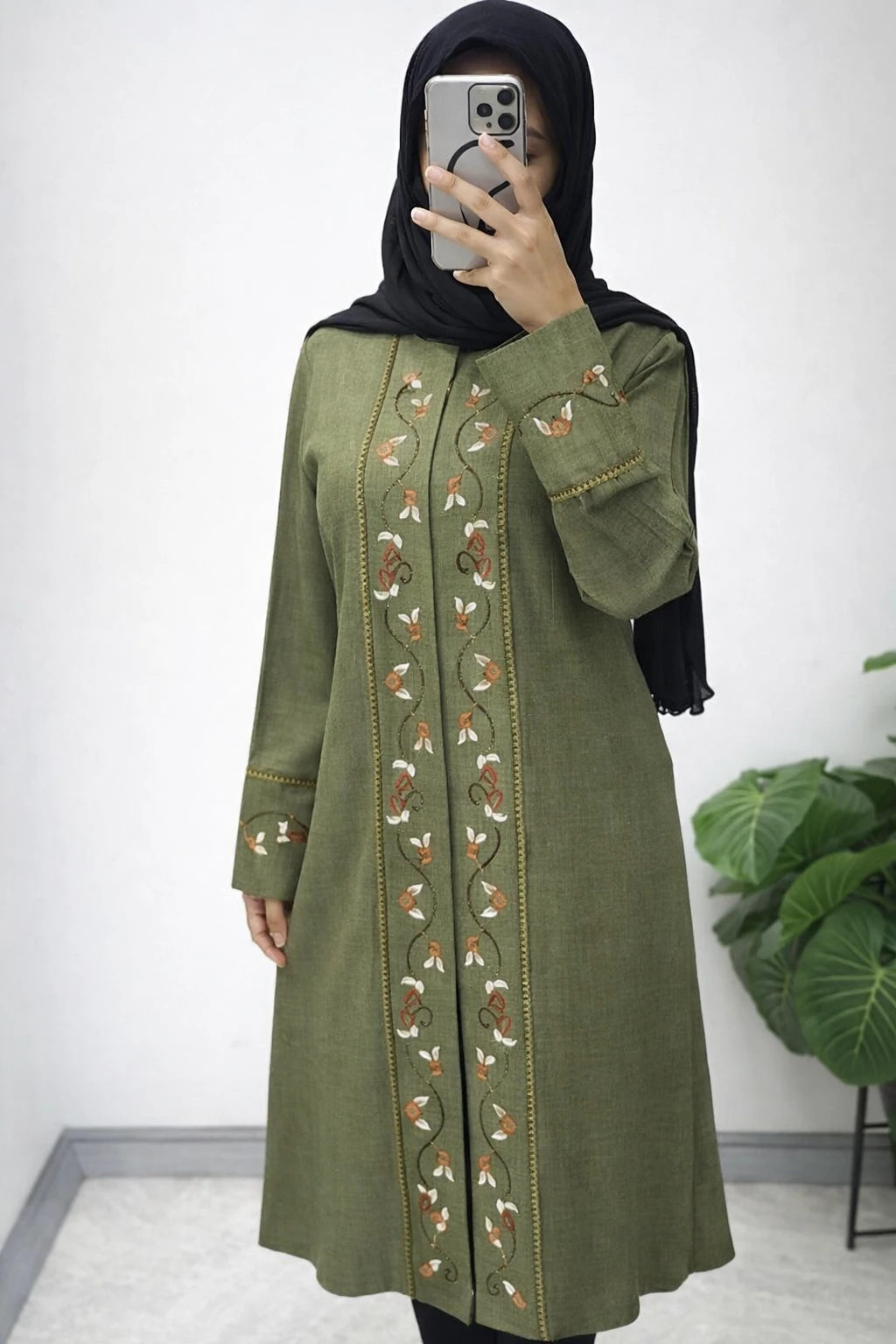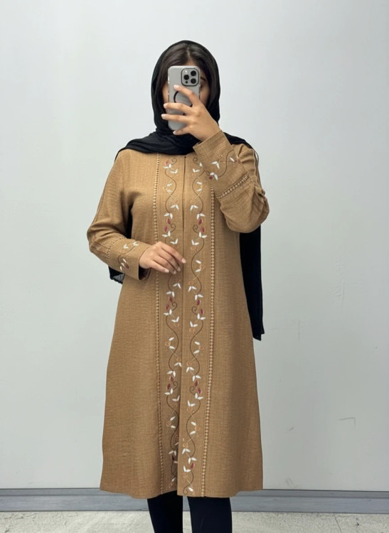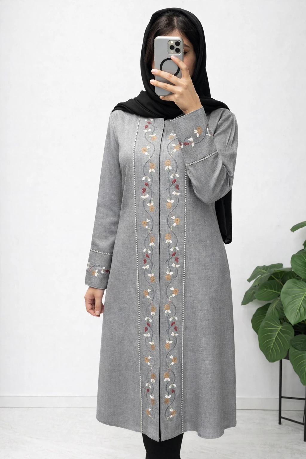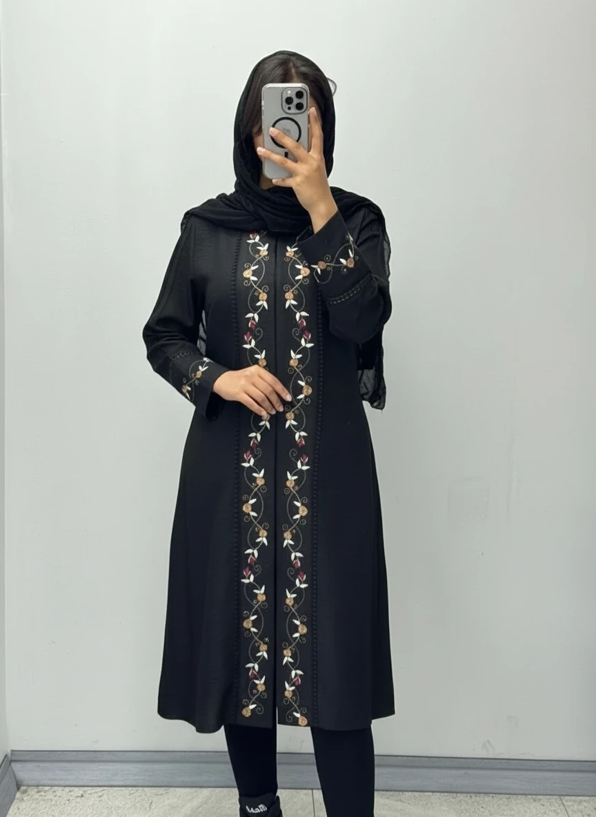 مانتو با پارچه شانتون با گلدوزی زیبا و نگینکاری