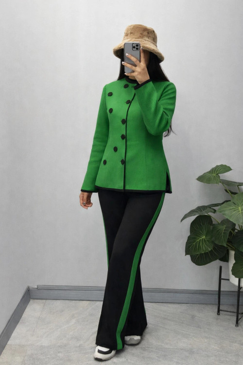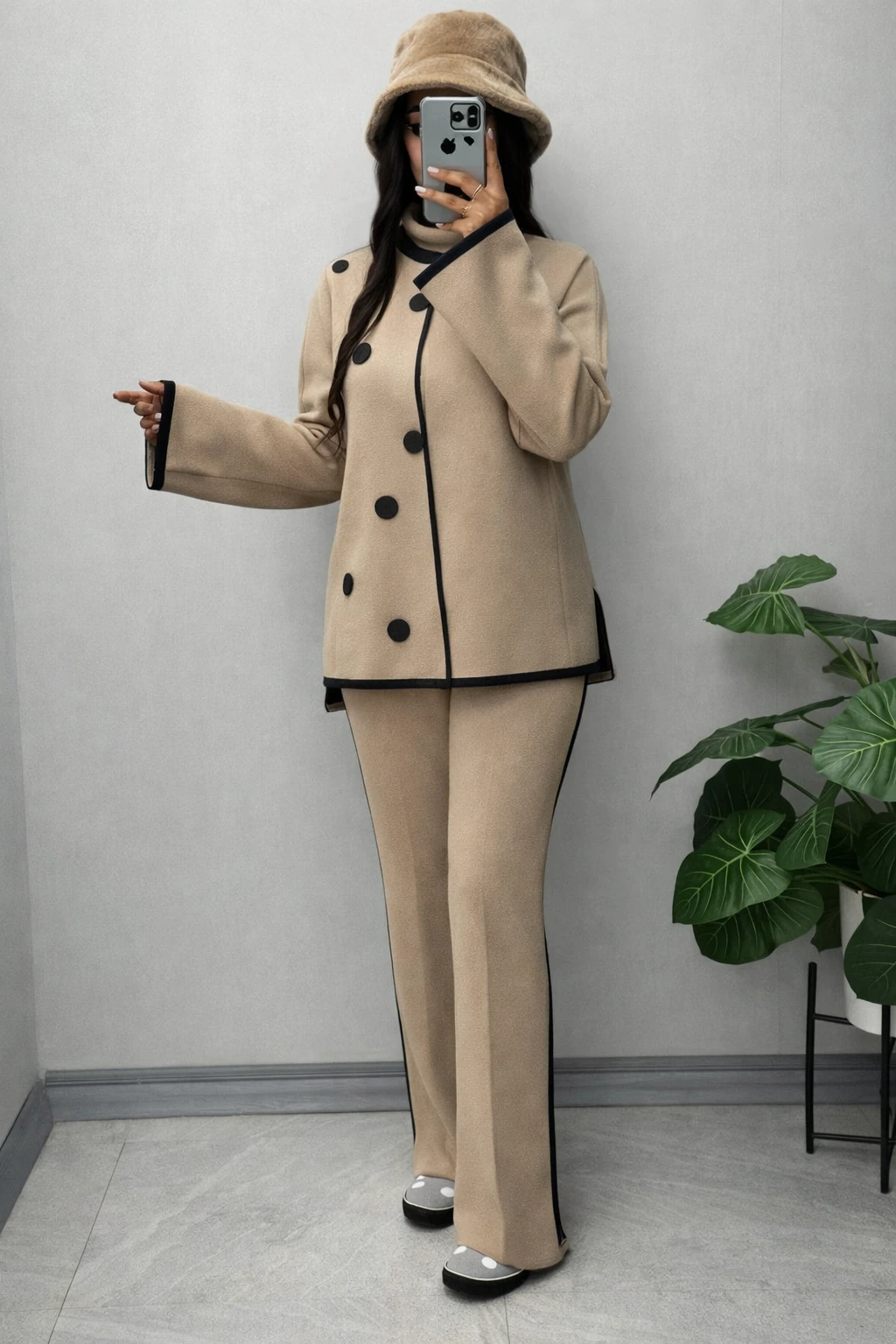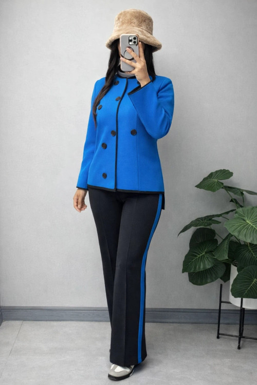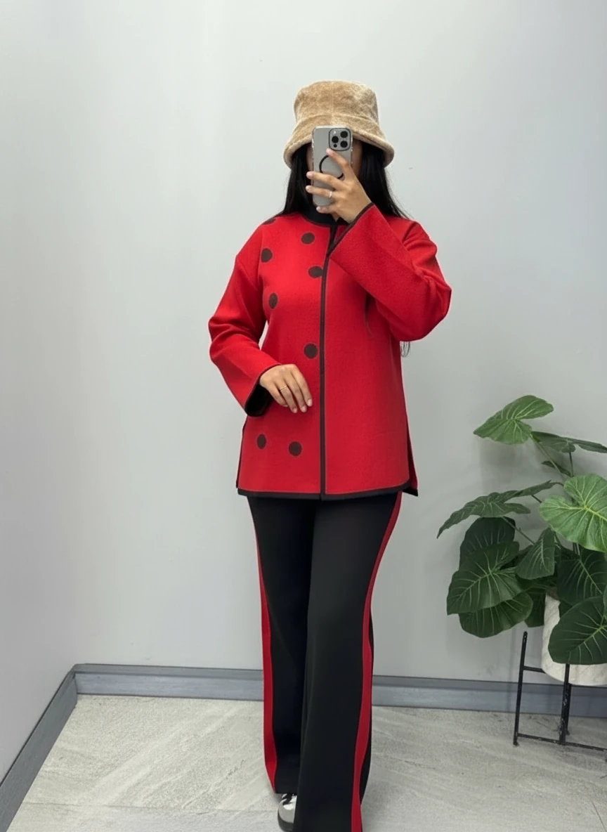 تک سایز مناسب برای سایزهای 38 الی 46 قد جلوی تونیک 65 قد پشت تونیک 70 قد شلوار 110 قد فاق 36