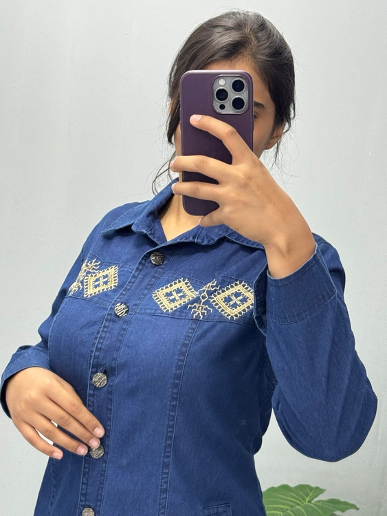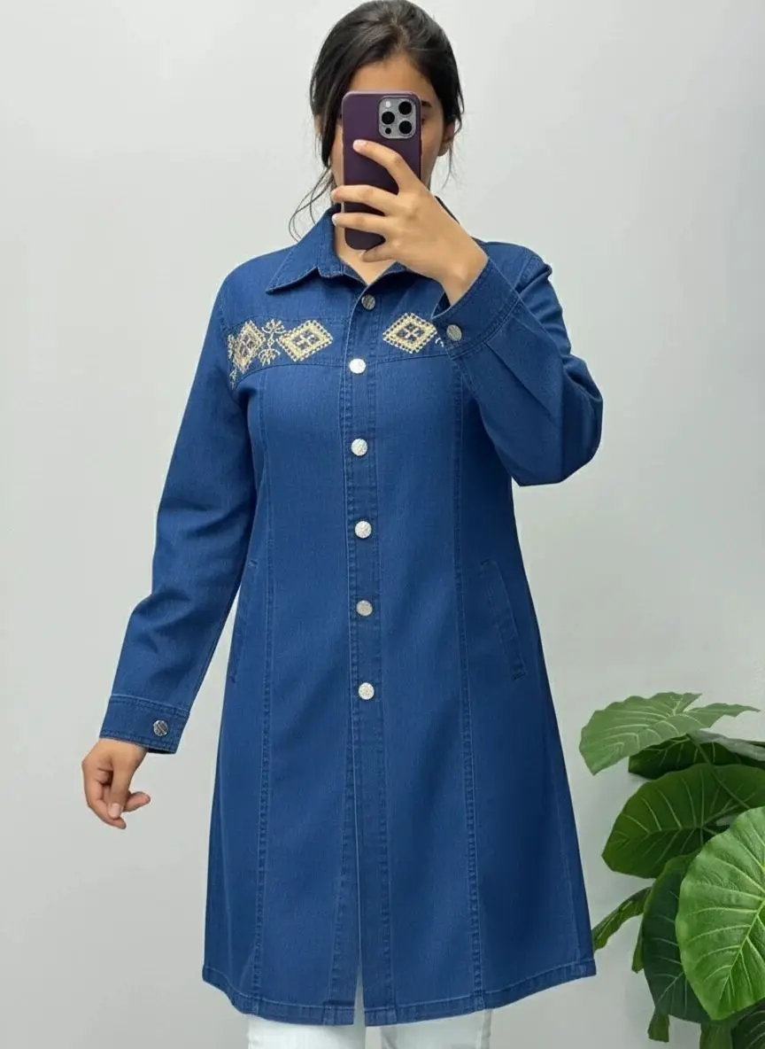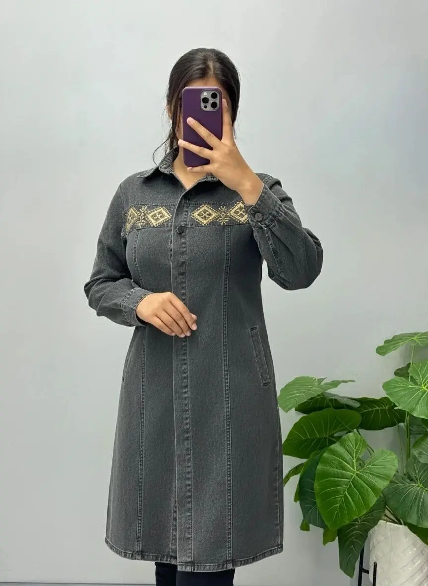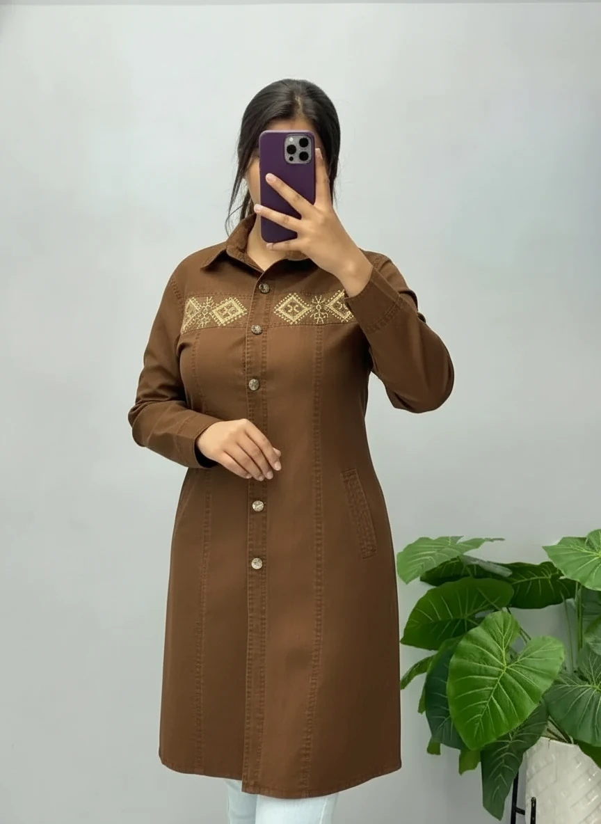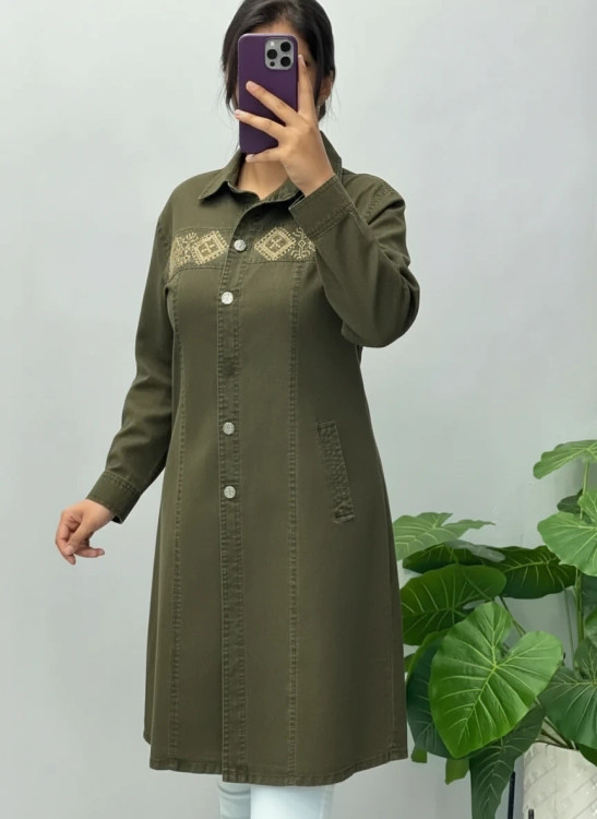 مانتو با پارچه کتان بیگمنت شست و آنزیم شور شده گلدوزی شده
