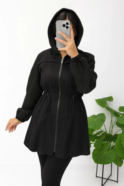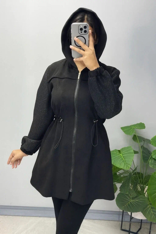 مانتو پاییزه با پارچه سوئیت و آستین کار فوتر لمه دار