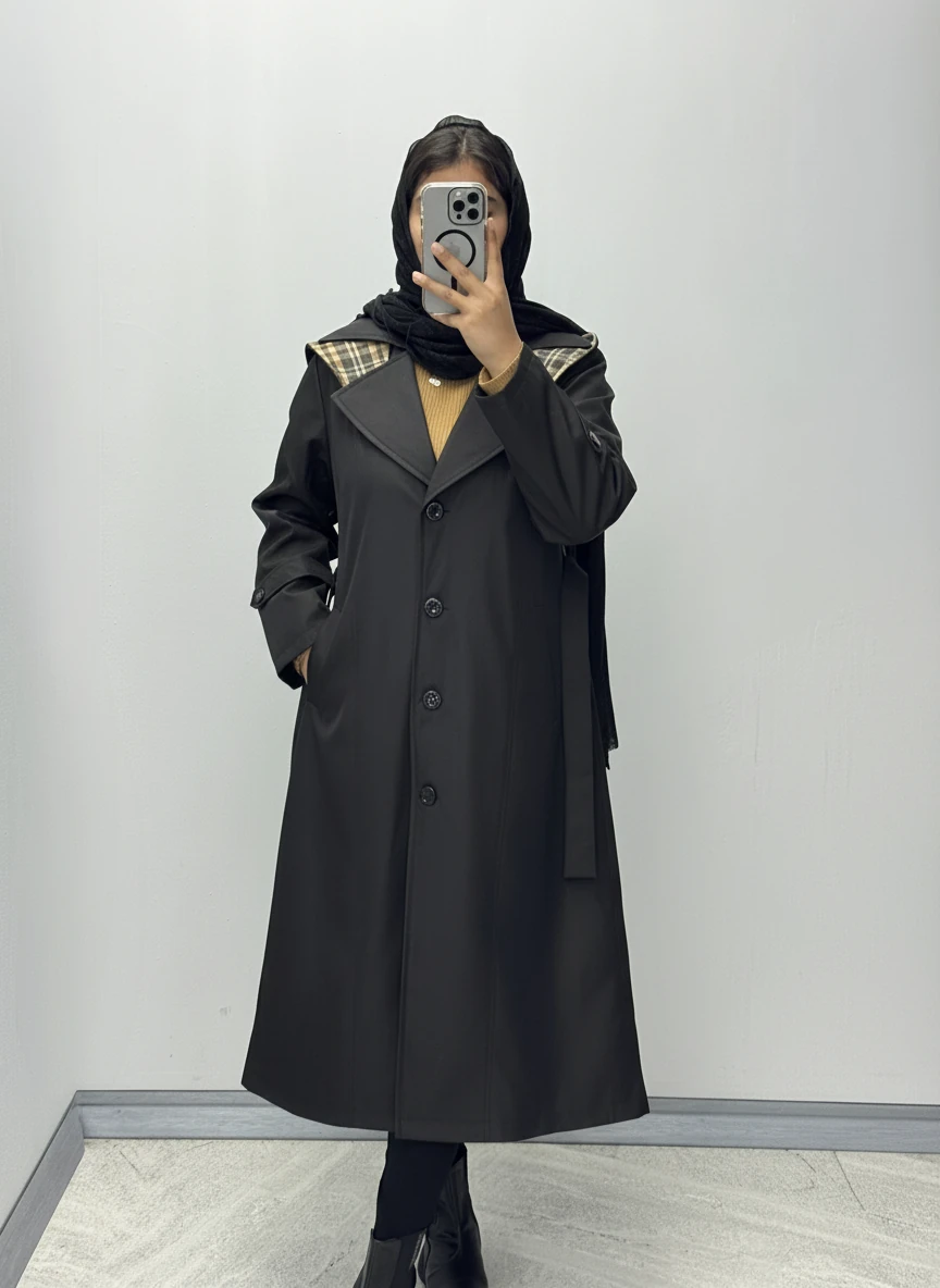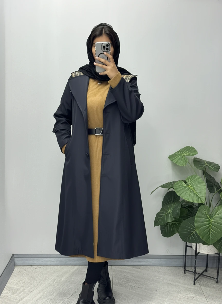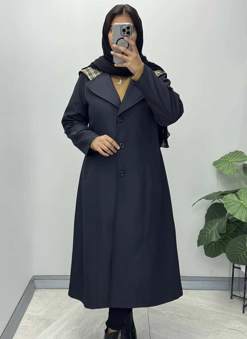 بارونی با پارچه سانتانا ضد اب کل کار استرکشی شده دو سایزی مناسب برای سایزهای 44 الی 52قد لباس 115 آستین 60 دور سینه 1) 118 کمر 110 باسن 126 بازو 48 دور سینه 2) 126 کمر 118 باسن 132 بازو 52