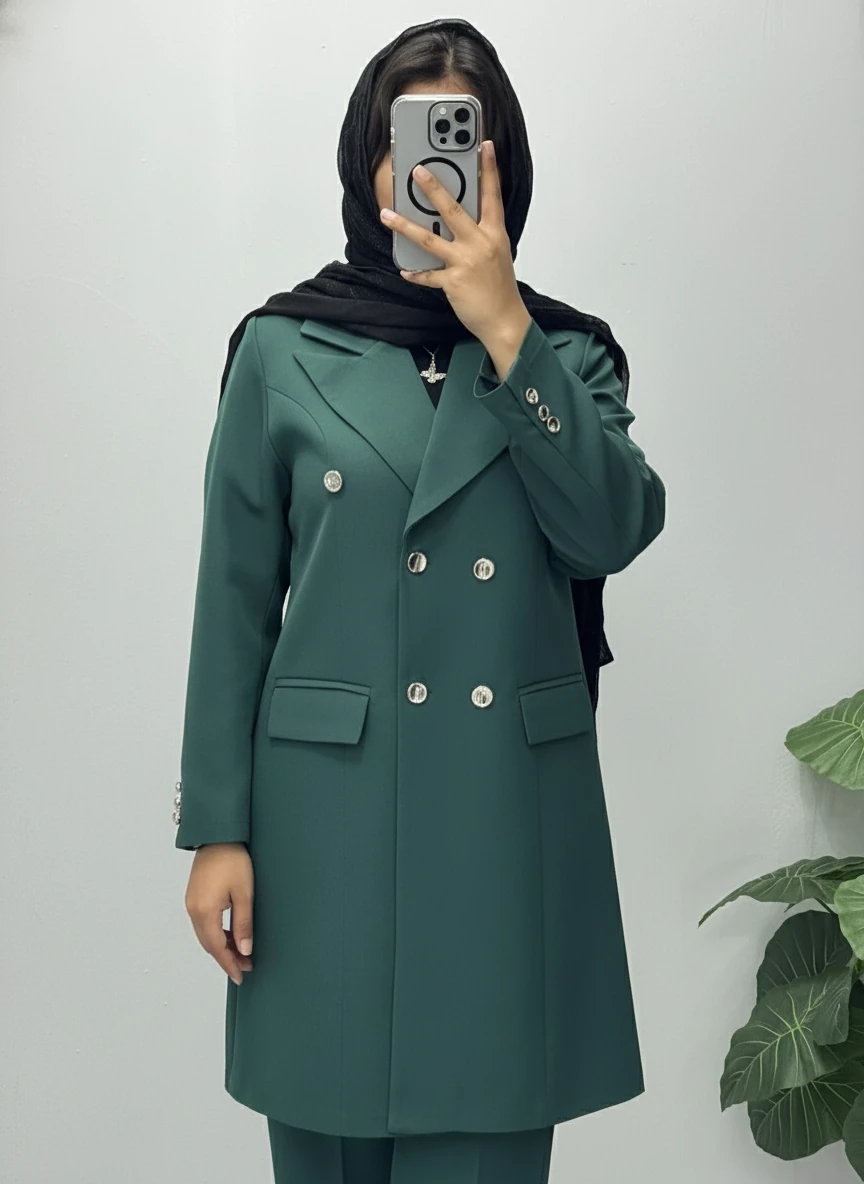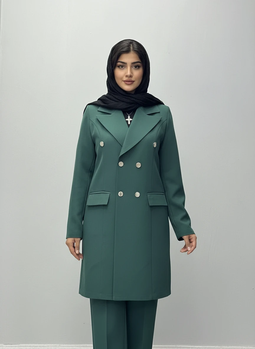 مانتو شلوار با پارچه کرپ مازراتی نخ توئیس مانتو با دکمه بسته میشه و کمر شلوار پشت کش