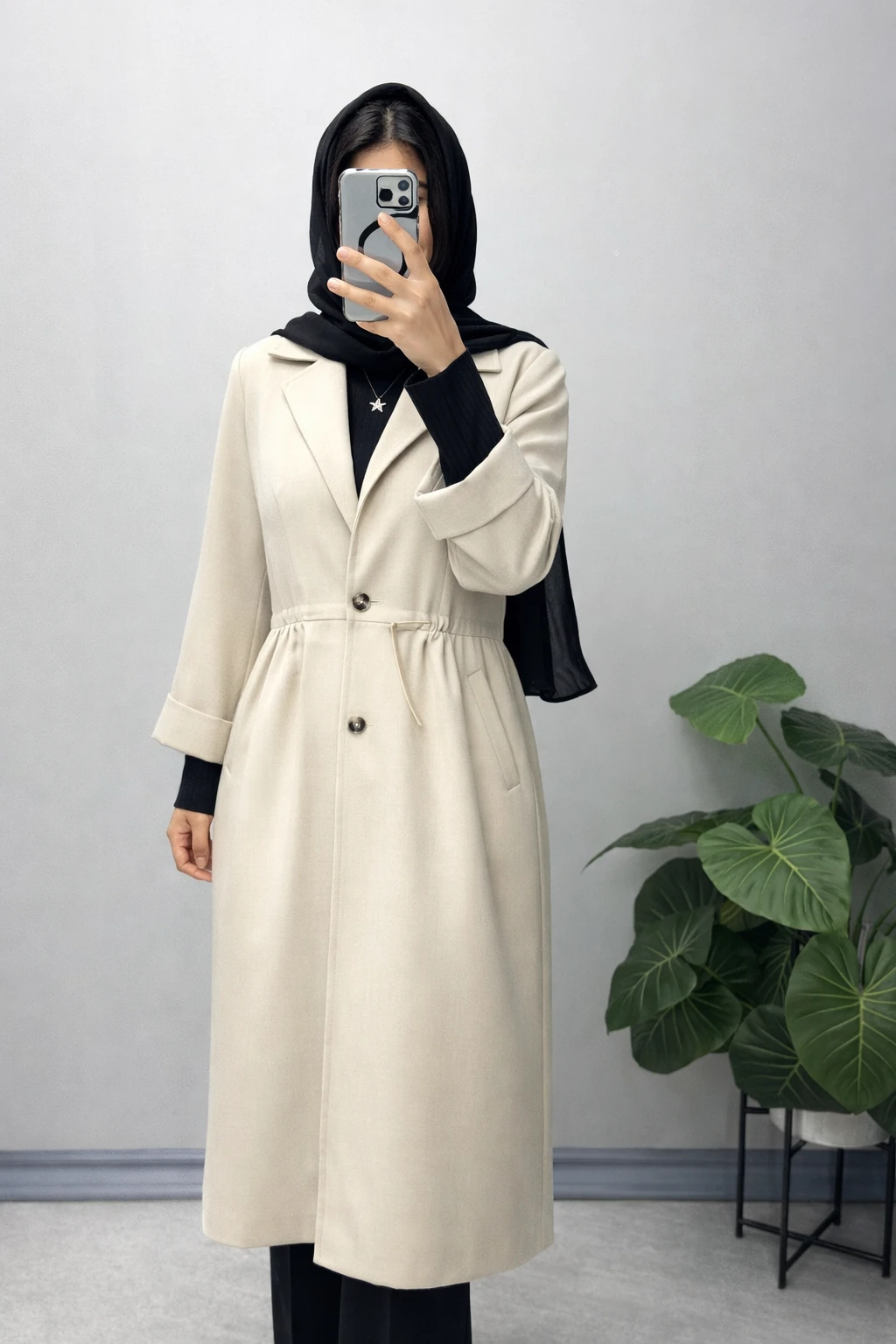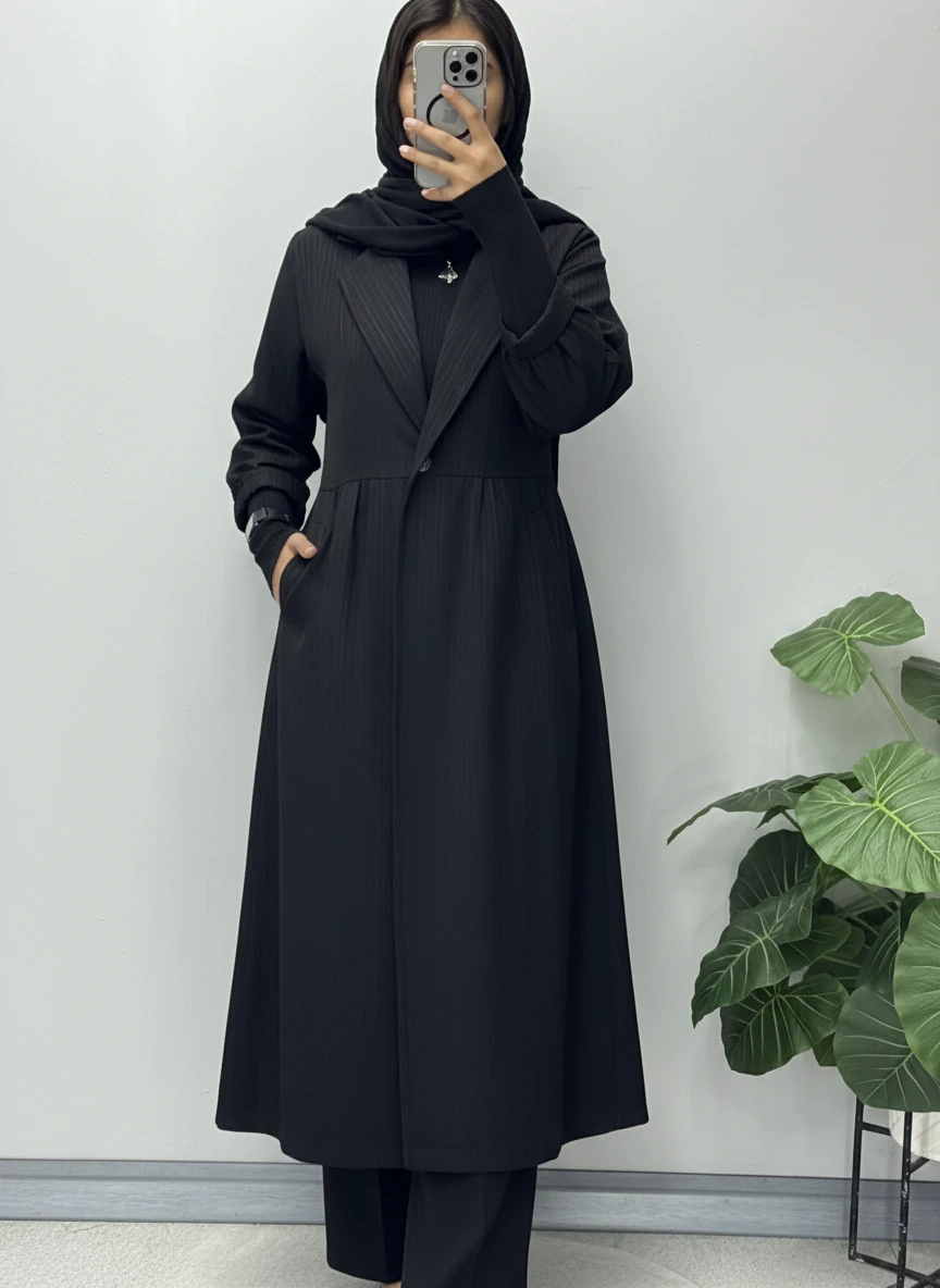 مانتو بلند با پارچه شانتون ژاکارد دو سایزی مناسب برای سایزهای 42 الی 48 قد 120 آستین 50 دور سینه 1) 104 کمر 96باسن 128 بازو 40 دور سینه 2) 114 کمر 106 باسن 138 بازو 42