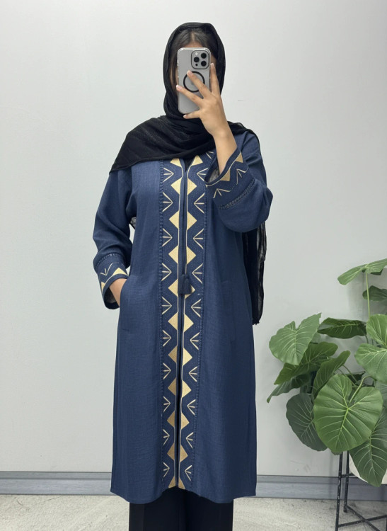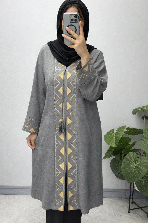 مانتو بلند با پارچه شانتون گلدوزی شده