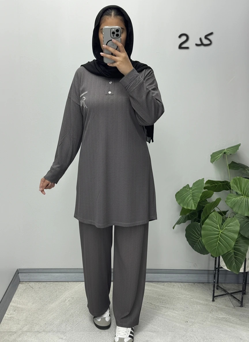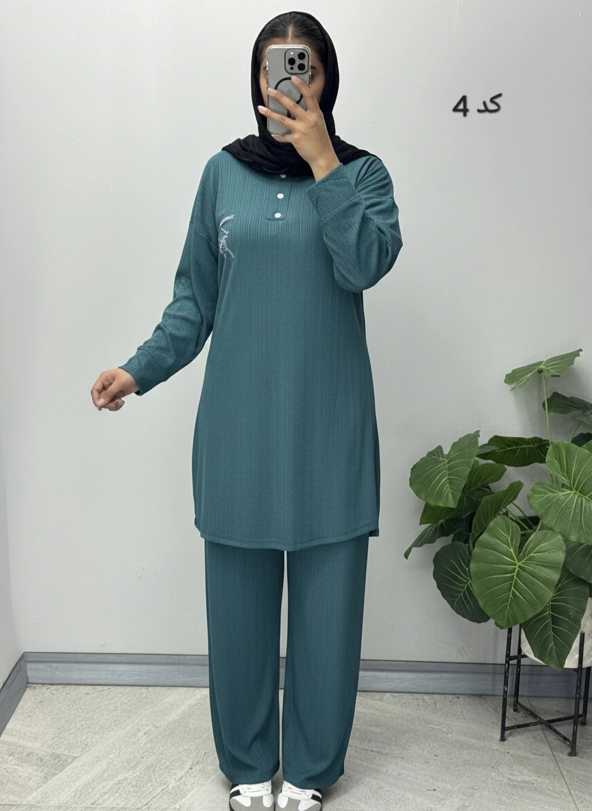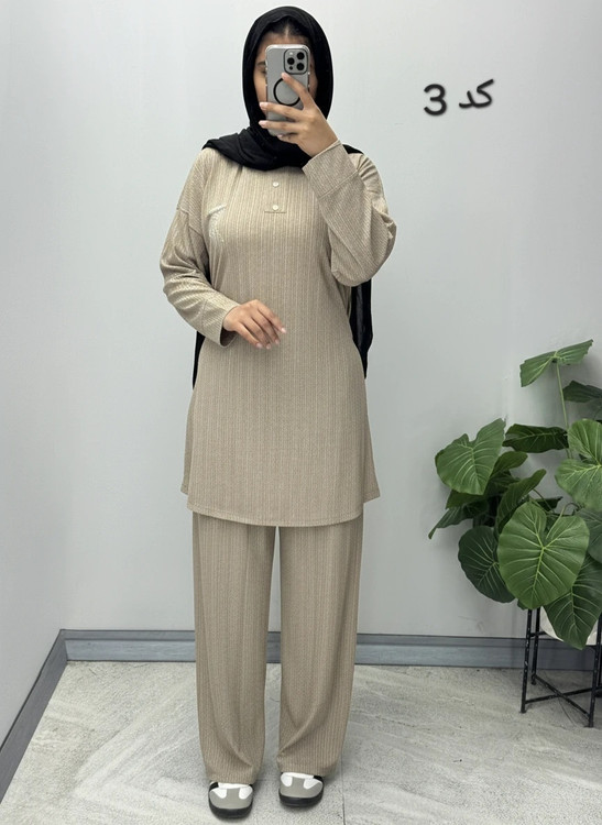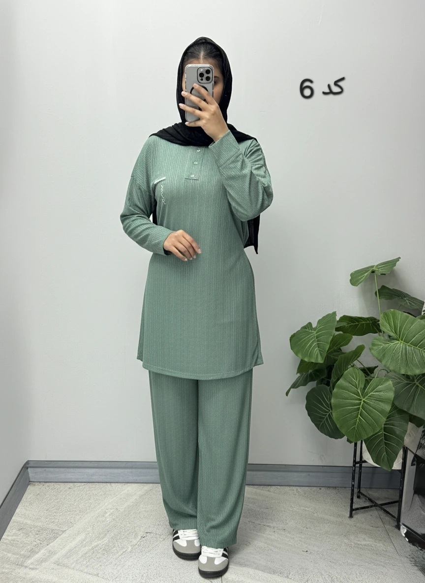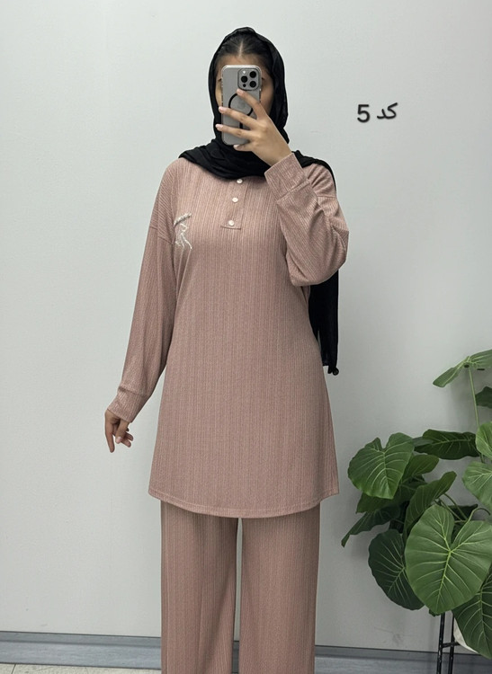 ست تونیک شلوار با پارچه کریشه با کشسانی بالا