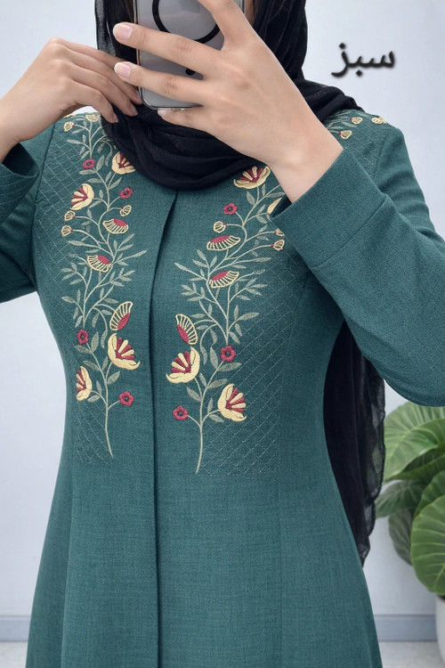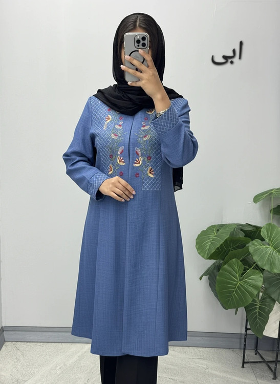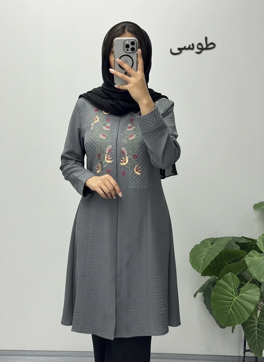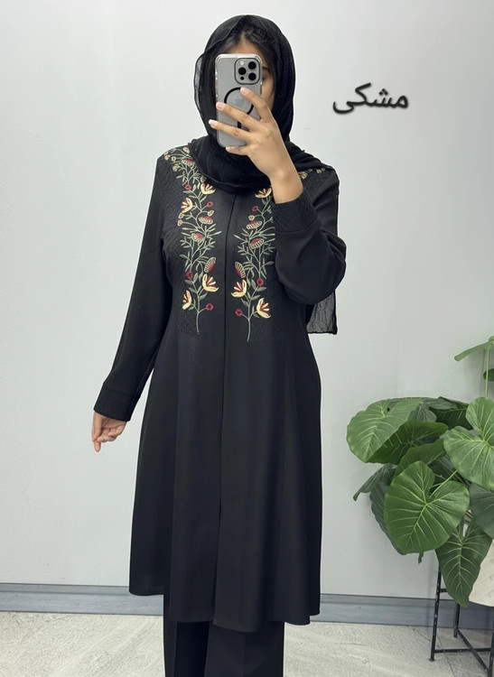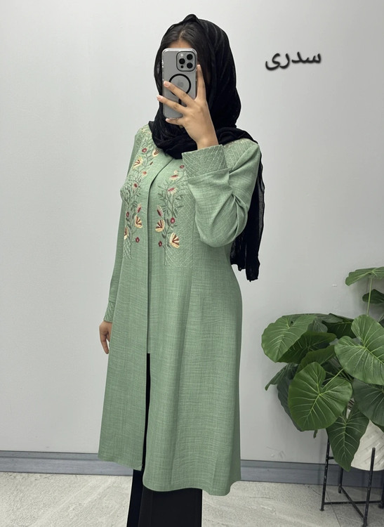 مانتو شانتون گلدوزی شده دکمه مخفی برای بسته شدن