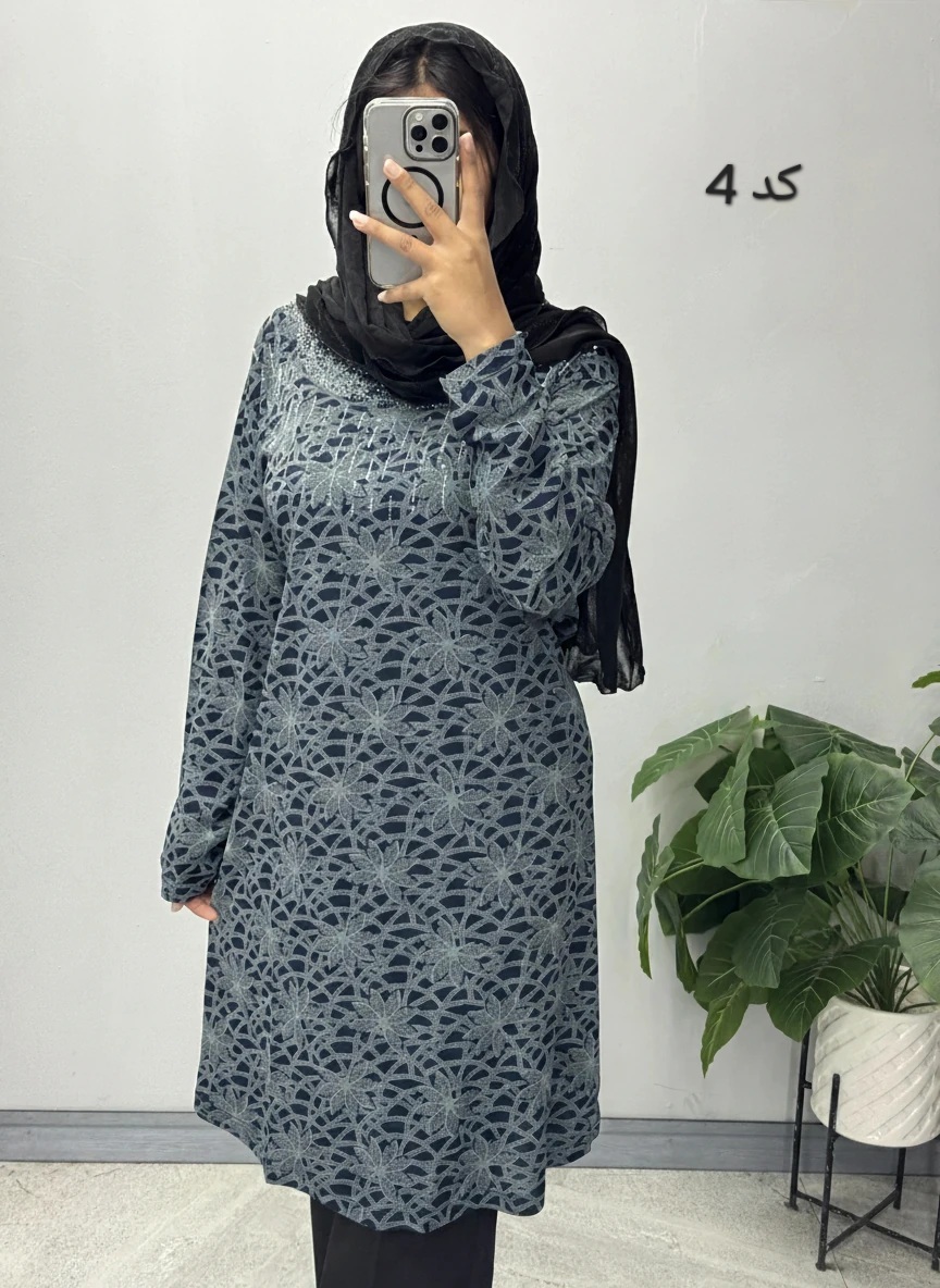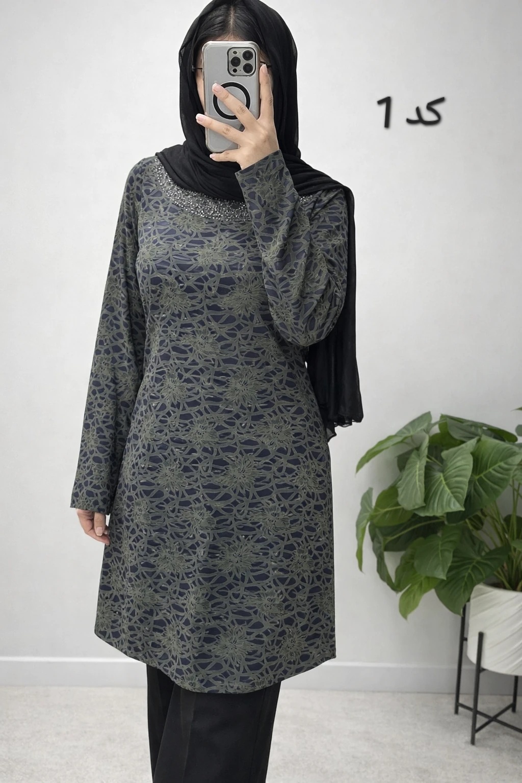 تونیک مانتویی با پارچه نخی چاپی بند از خود پارچه برای تنظیم سایز داره تک سایز مناسب برای سایزهای 46 الی 56 قد لباس 100 آستین 58 دور سینه 130 کمر 132 باسن 146 بازو 48