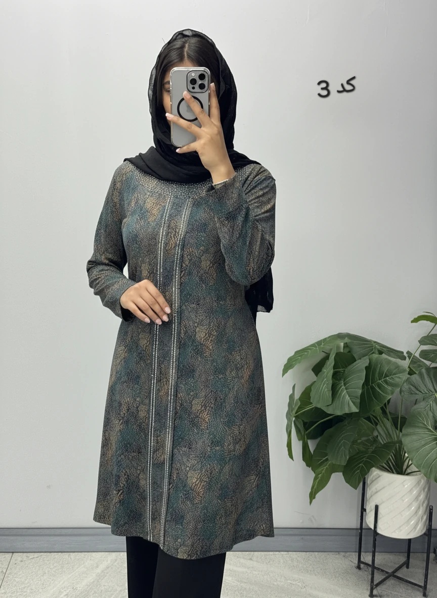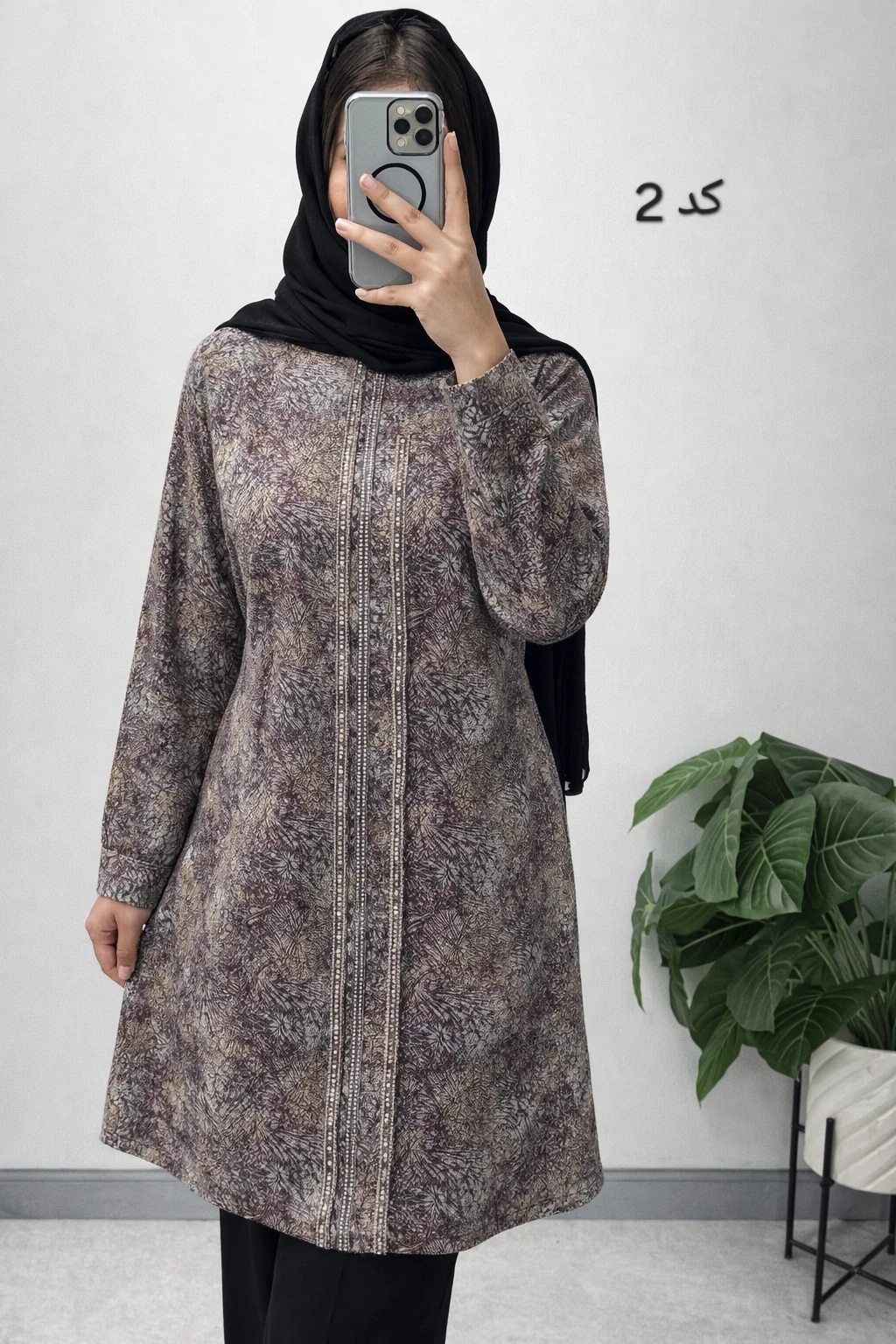 تونیک مانتویی با پارچه نخ نگینکاری شده دو سایزی مناسب برای سایزهای 42 الی 52 قد لباس 100 آستین 56 دور سینه 1 ) 112 کمر 110 باسن 120 بازو 44 دور سینه 2) 122 کمر 120 باسن 132 بازو 46