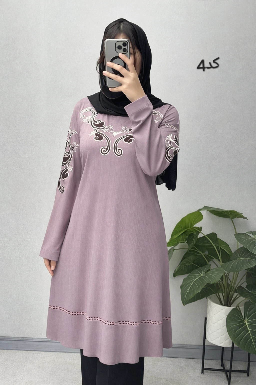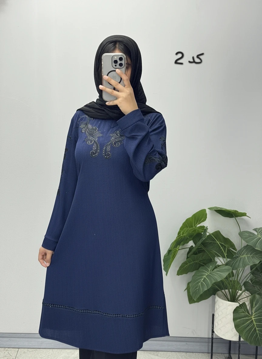 تونیک مانتویی با پارچه کریشه گرم بالا با کشسانی بالا گلدوزی شده بند تنظیم داره تک سایز 44 الی 54 قد لباس 104 آستین 57 دور سینه 120 کمر 122 باسن 138 بازو 44