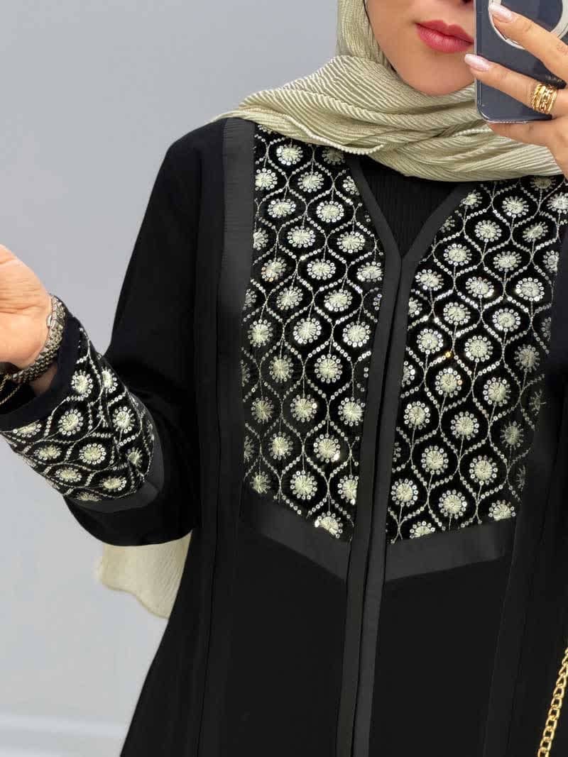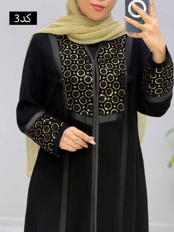 مانتو مجلسی حریر اسود خرجکار مخمل پولکی