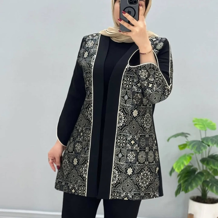 مانتو کتی نقشینه 580000 پارچه ترکیبی مازراتی و طرح سوزن دوزی دو سایزی مناسب برای سایزهای 40الی46 قد مانتو 80 راهنمای سایزبندی اندازه های ریز کار اسلاید آخر شماره واتساپ و ایتا برای اطلاعات بیشتر و کالا 09012390972 حضوری زرندیه زاویه فروشگاه شیک پوشان 08645263559 سایت فروشگاه www.zaveyeposhak.ir