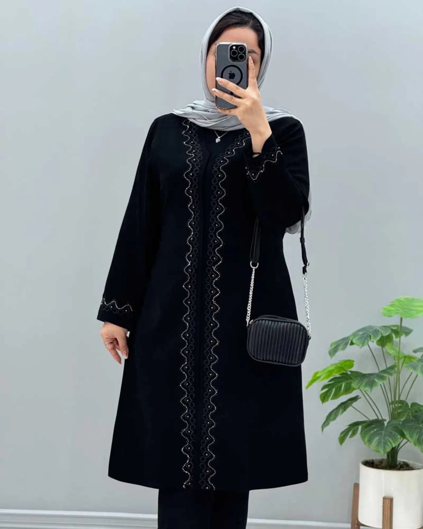 مانتو مجلسی نیکان . ۹۸۵۰۰۰ پارچه شانتون اندونزی جت بلک ۶سایزی ۴۴ الی ۵۴ قد مانتو ۱۰۸ راهنمای سایزبندی اندازه های ریز کار اسلاید آخر شماره واتساپ و ایتا برای اطلاعات بیشتر و کالا ۰۹۰۱۲۳۹۰۹۷۲ حضوری زرندیه زاویه فروشگاه شیک پوشان ۰۸۶۴۵۲۶۳۵۵۹ سایت فروشگاه www.zaveyeposhak.ir