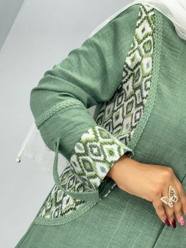 مانتو بلند با پارچه ترکیبی شانتون و خرجکار باتیک