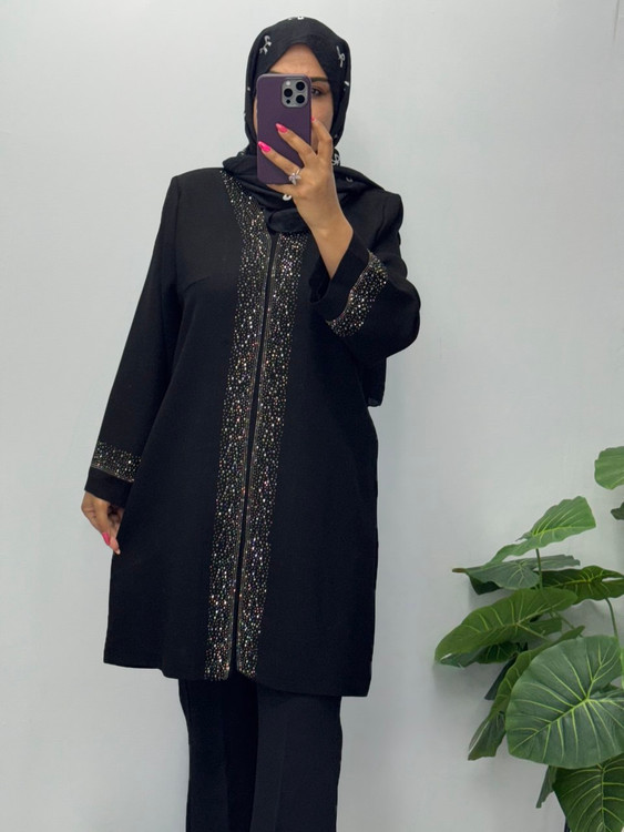 با نگین نقره ای دکمه مخفی برای بسته شدن مانتو