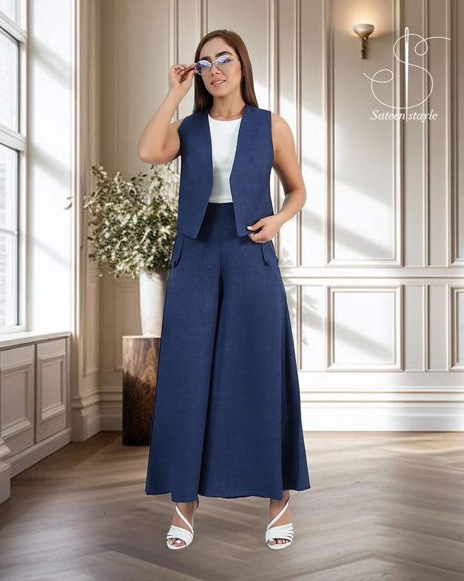ست ژیله و دامنشلواری شانتون مناسب فصل تابستان ترند شیک ژیله کار کاملا استرکشی ساتن شده برای ایستایی بهتر