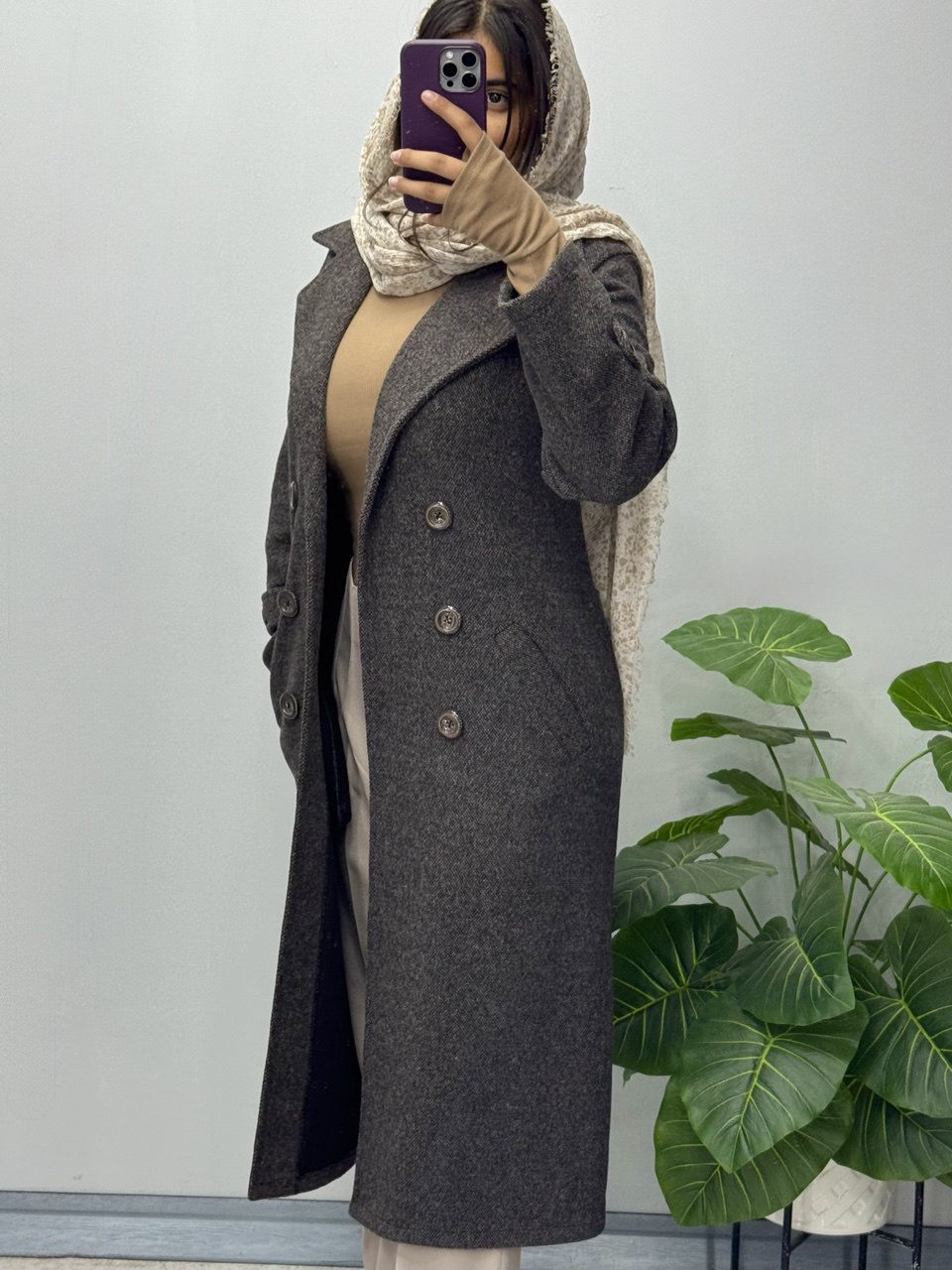 پالتو بلند چهارخونه پارچه پشمی کد 608